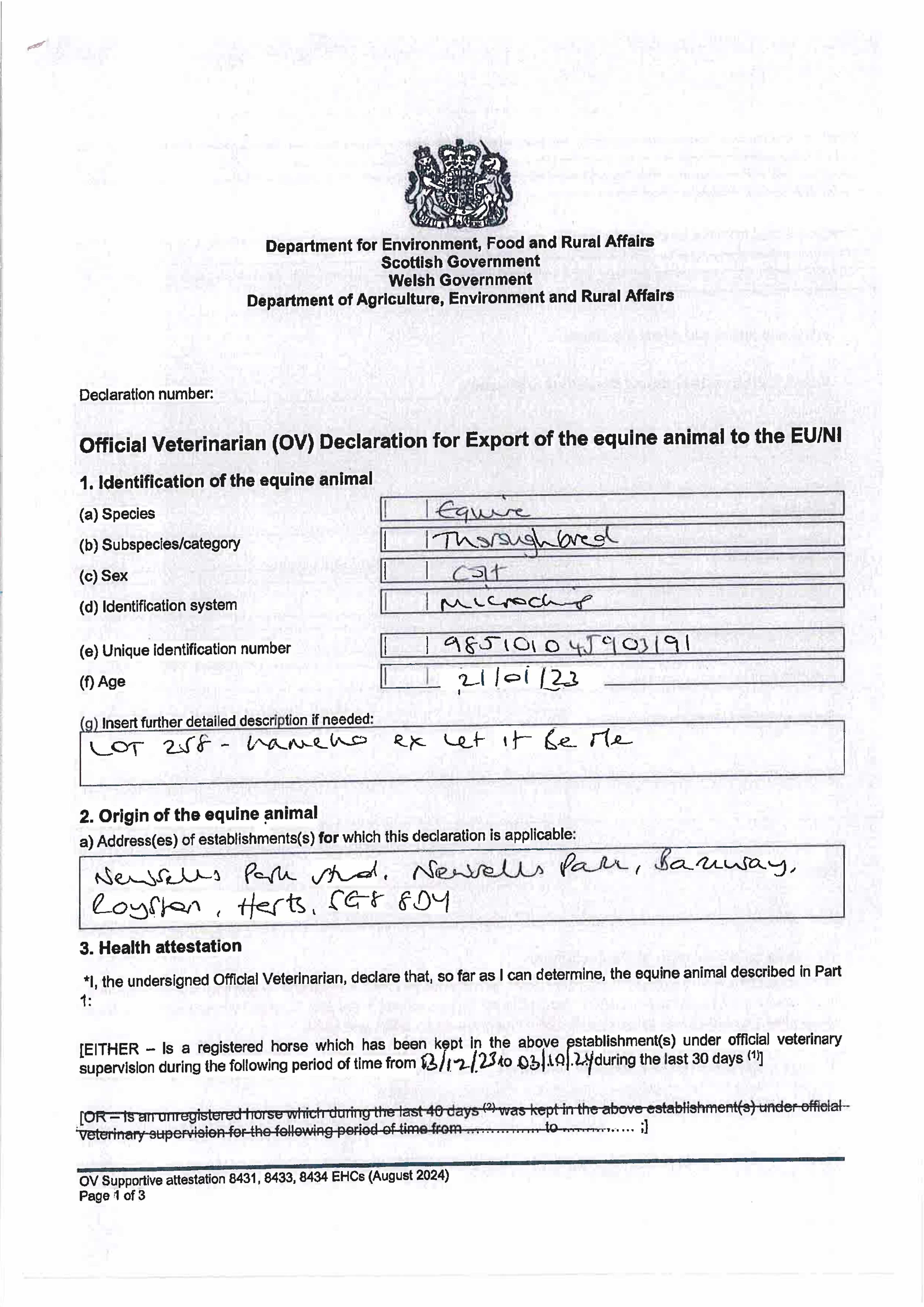 December Foal Sale 2023 lot 837, Mickley Stud Ltd.=>Norris / Huntingdon 130,000 gns