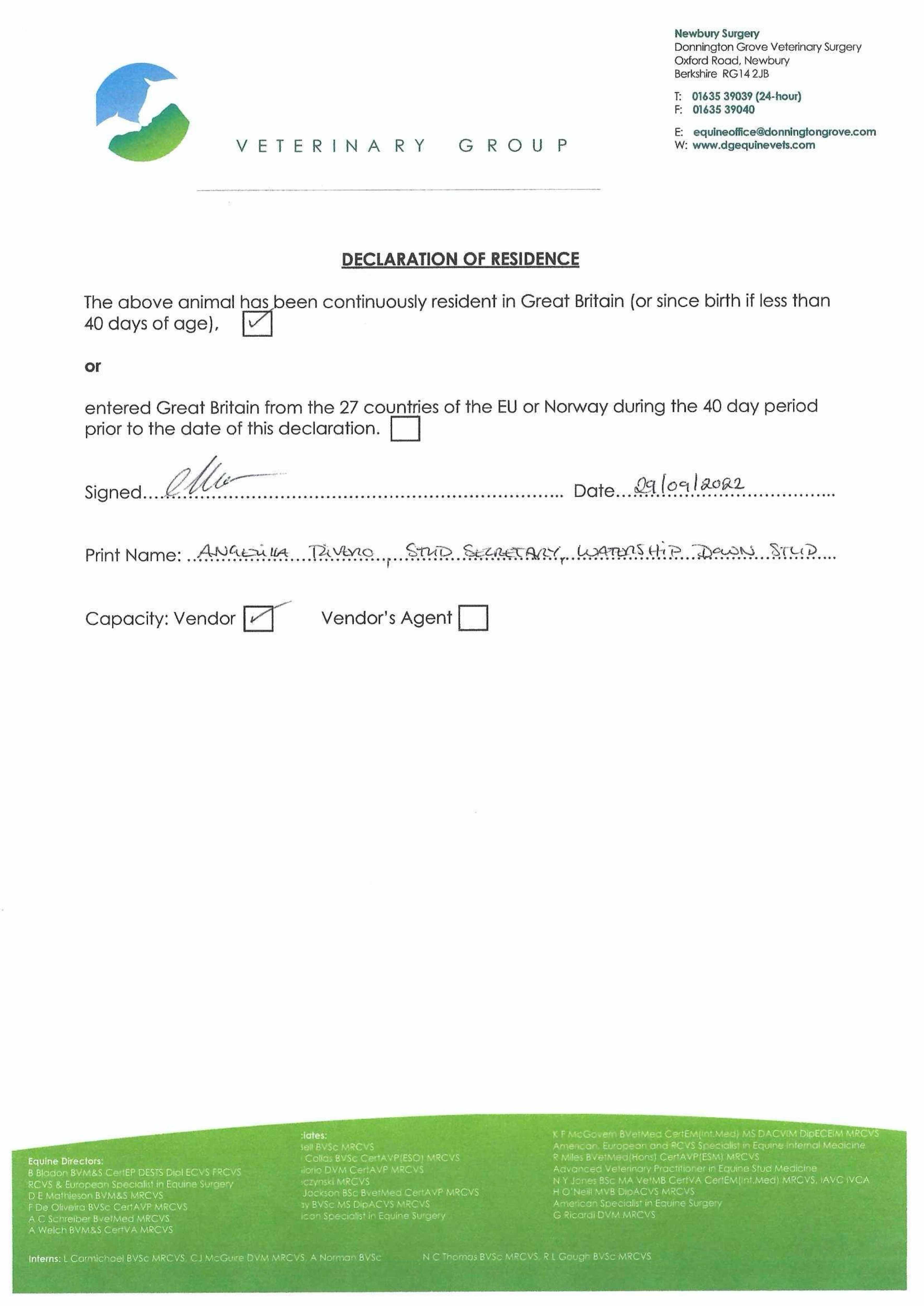Consignor: Watership Down Stud