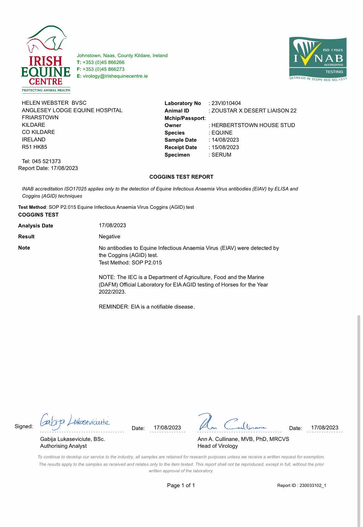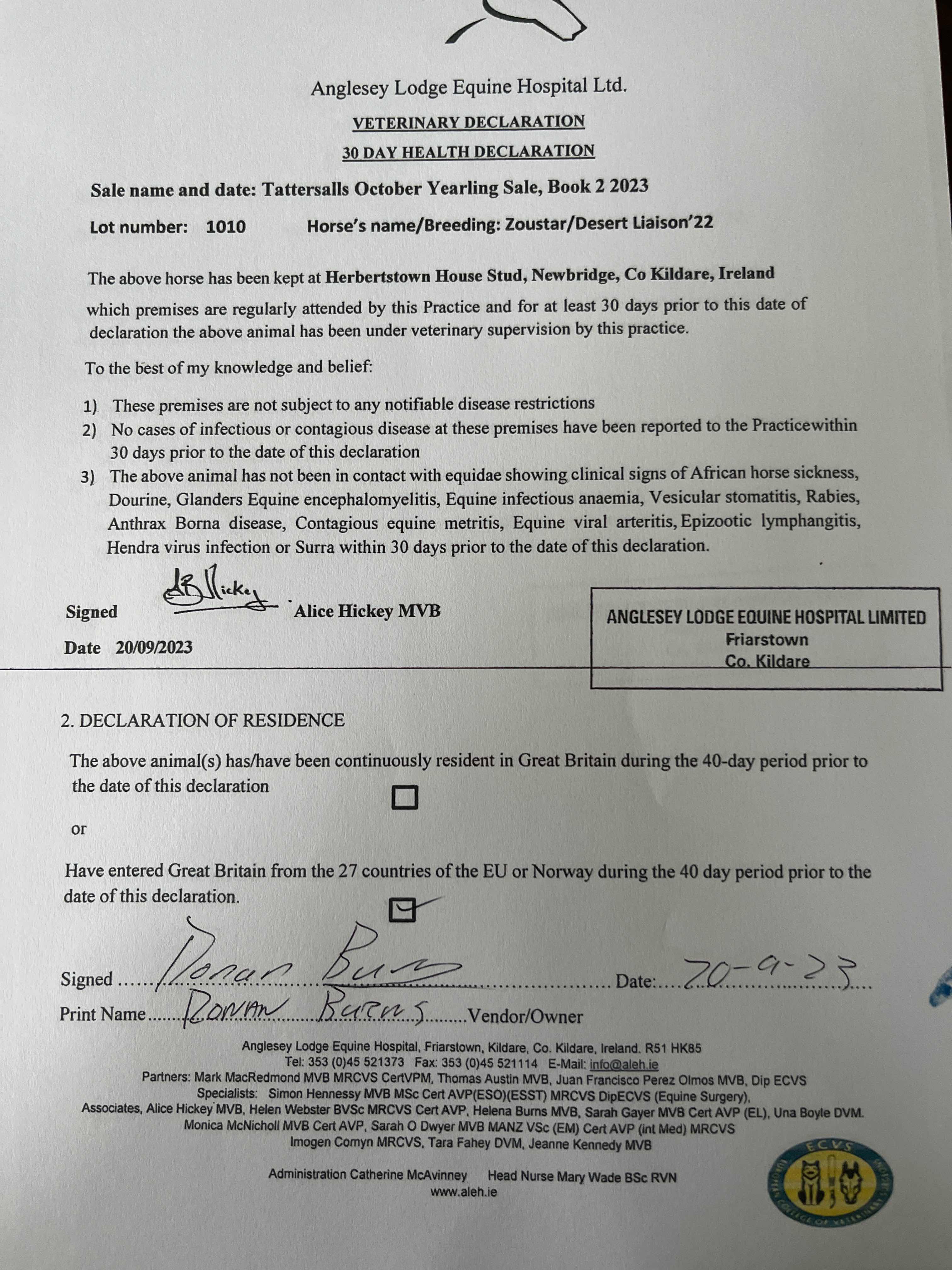 Consignor: Herbertstown House Stud (Co. Kildare), Ireland