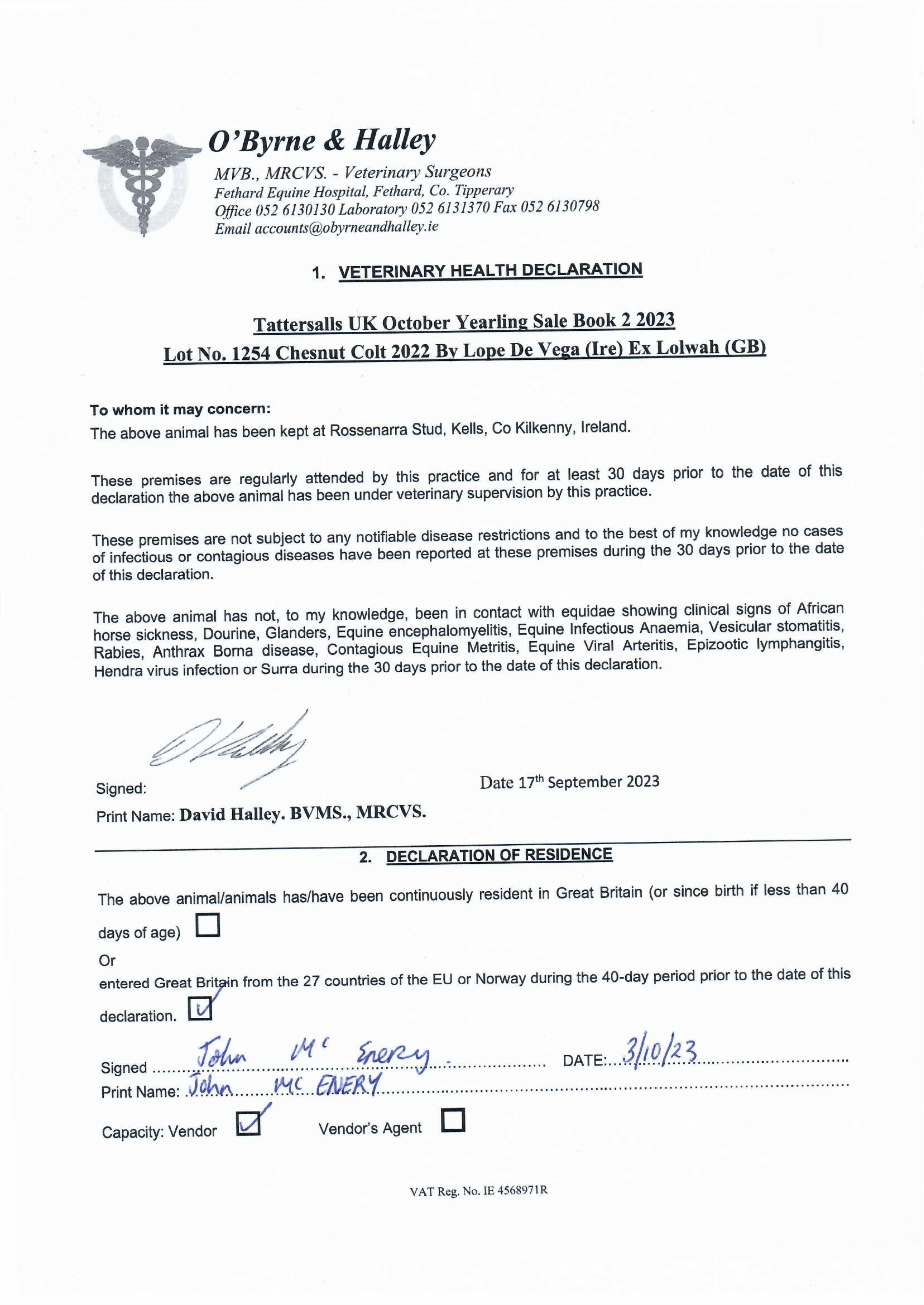 Consignor: Rossenarra Stud, Ireland