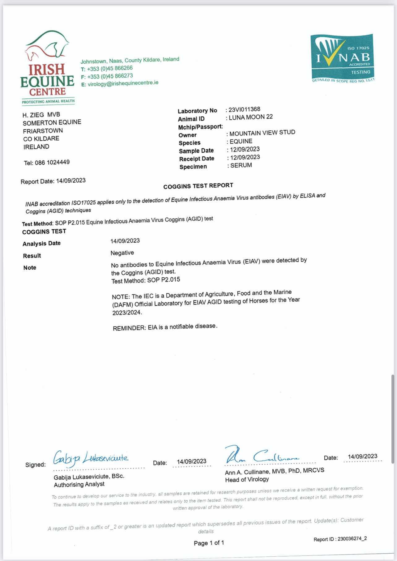 Consignor: Mountain View Stud, Ireland