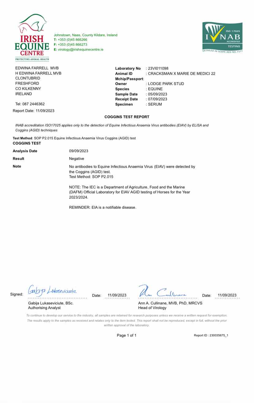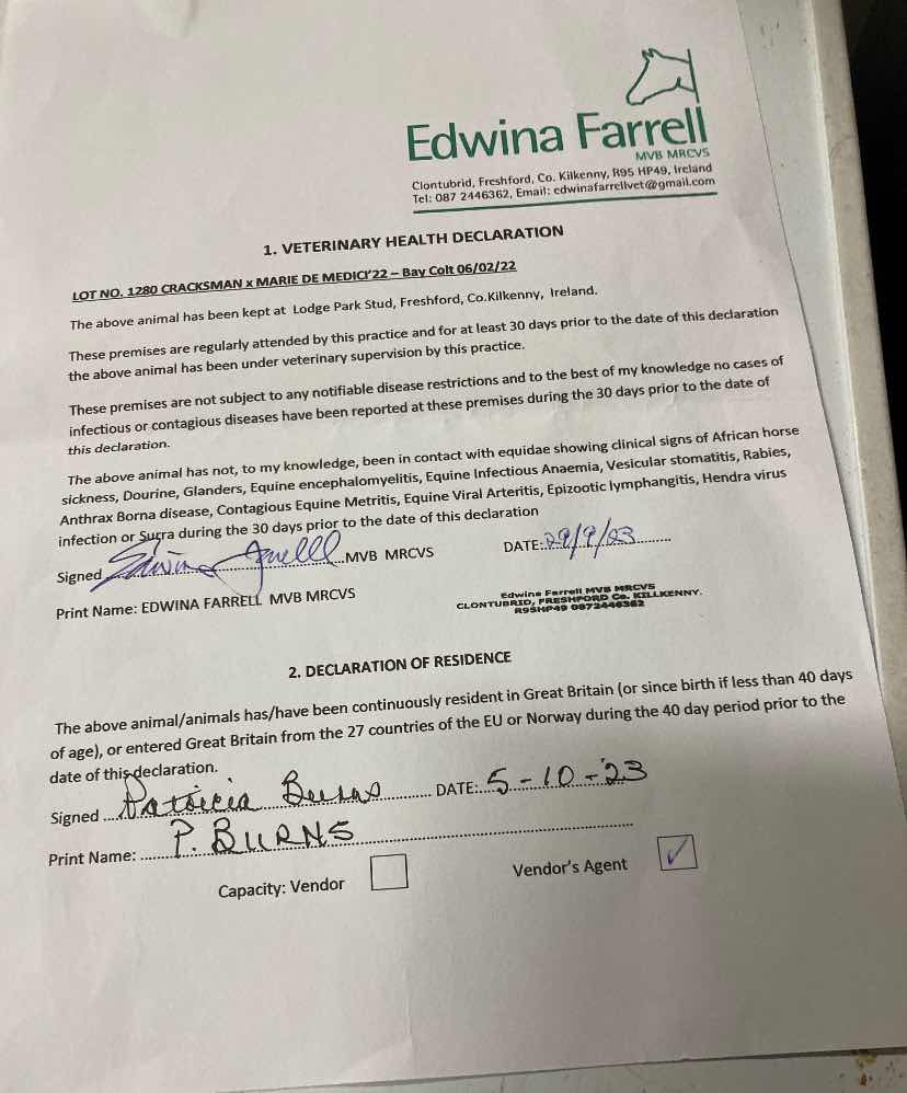 Consignor: Lodge Park Stud, Ireland