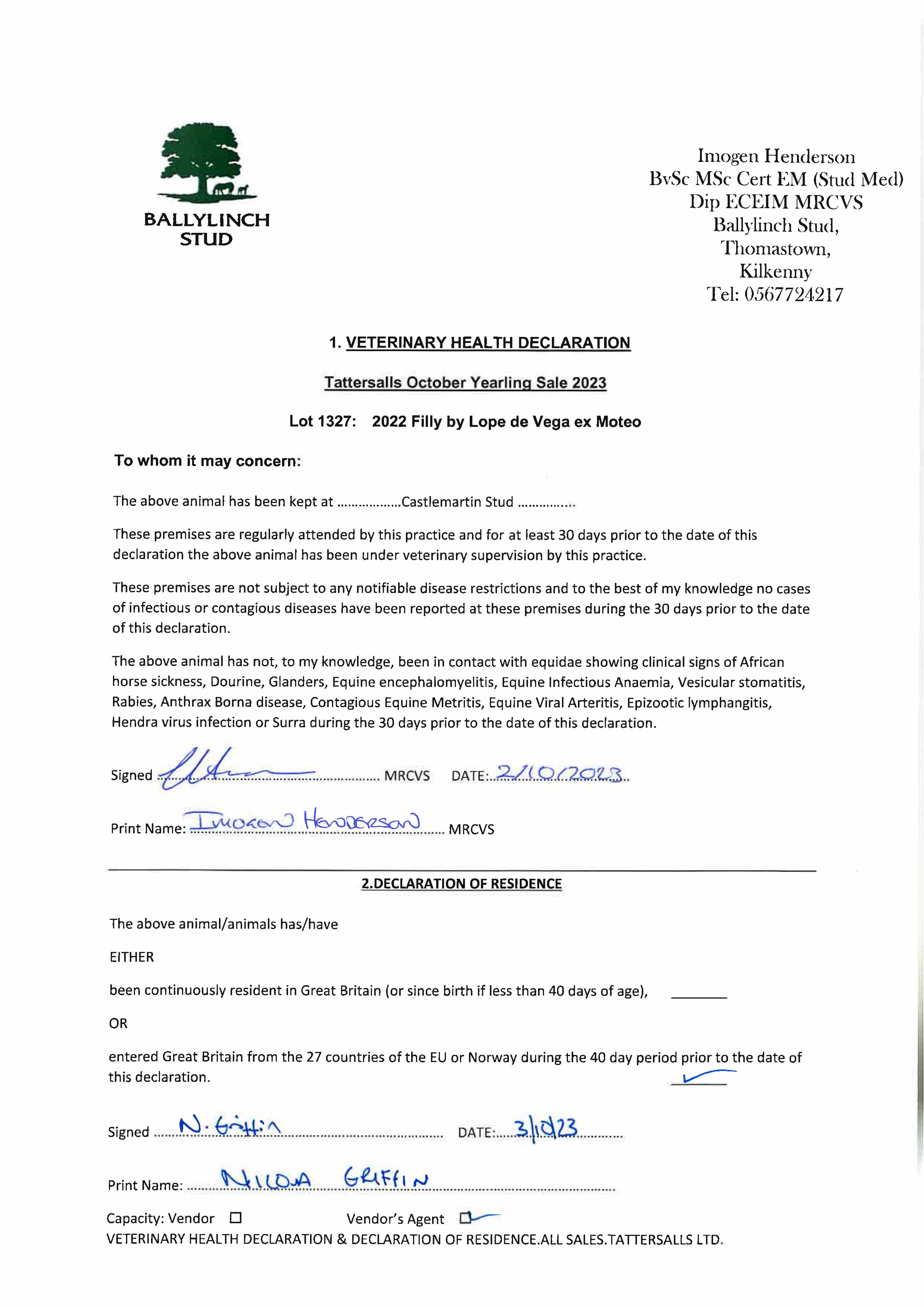 Consignor: Ballylinch Stud, Ireland
