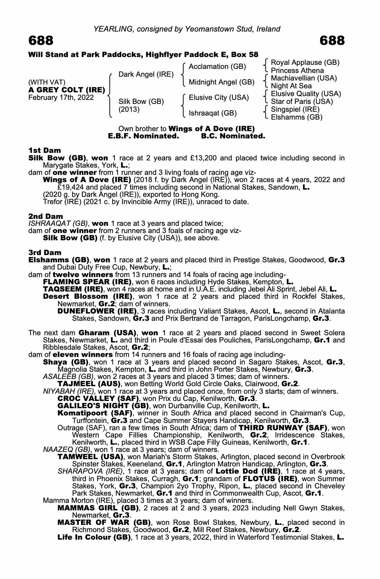 Consignor: Yeomanstown Stud, Ireland
