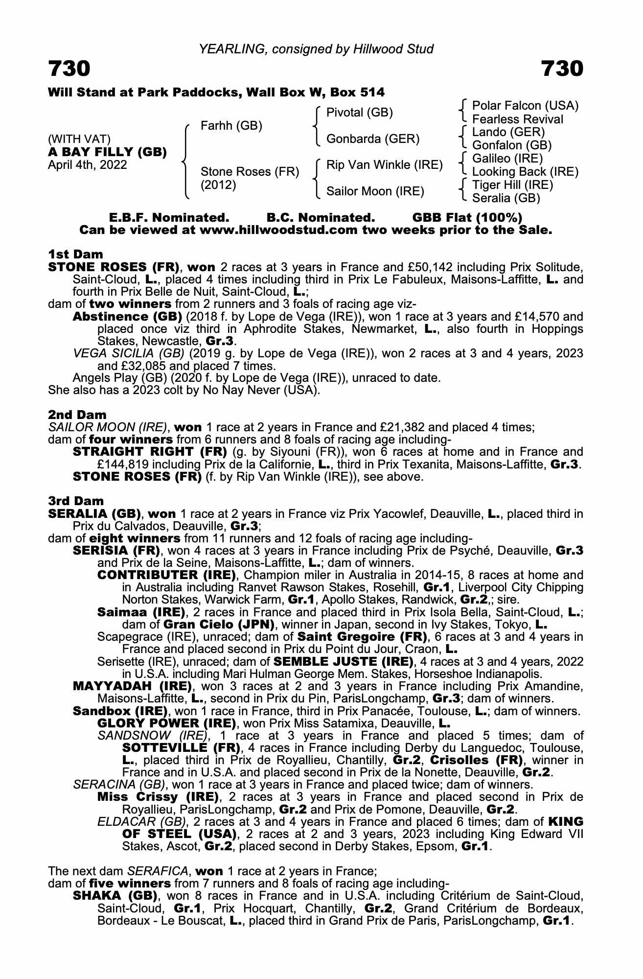 July Sale 2023 lot 744 Vega Sicilia (GB) (G. by Lope de Vega (IRE)), Barton Sales=>HH Sultan Aldeen MS Al-Khalifa 125,000 gns