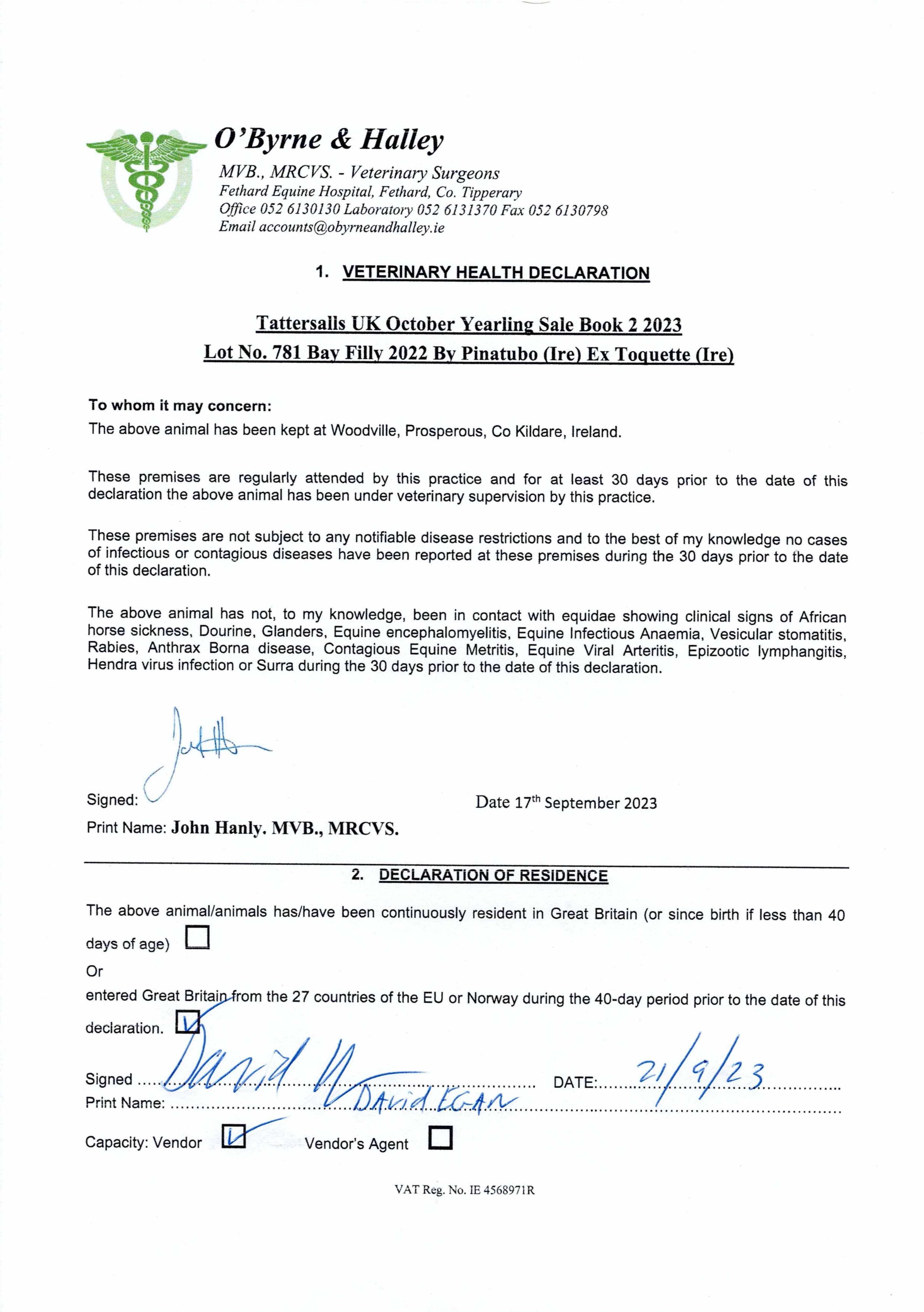 December Mare Sale 2023 lot 1307 Toquether (IRE) (F. by Kodiac (GB)), Baroda Stud, Ireland=>Blandford Bloodstock 60,000 gns