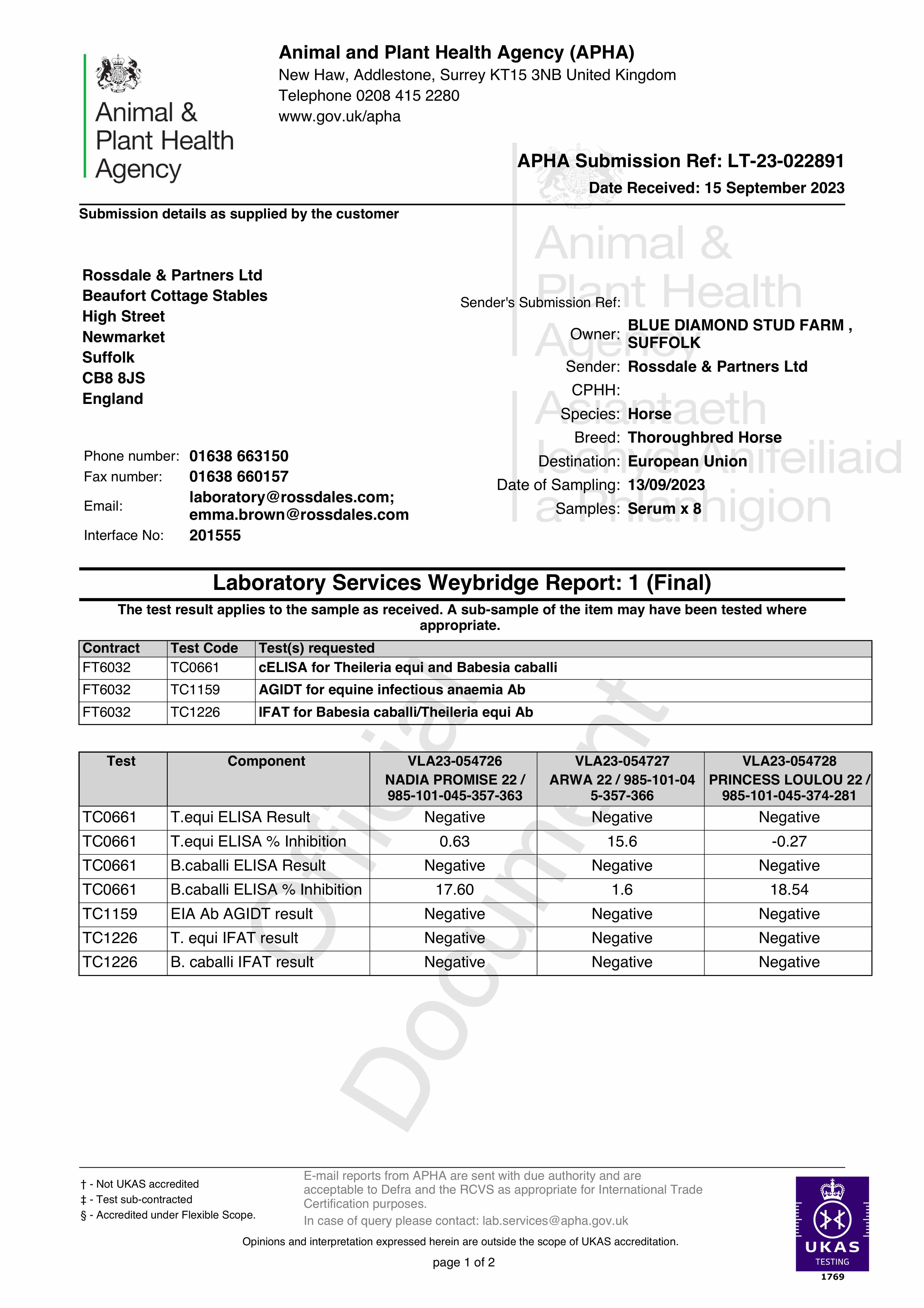 Consignor: Blue Diamond Stud Farm (UK) Ltd.
