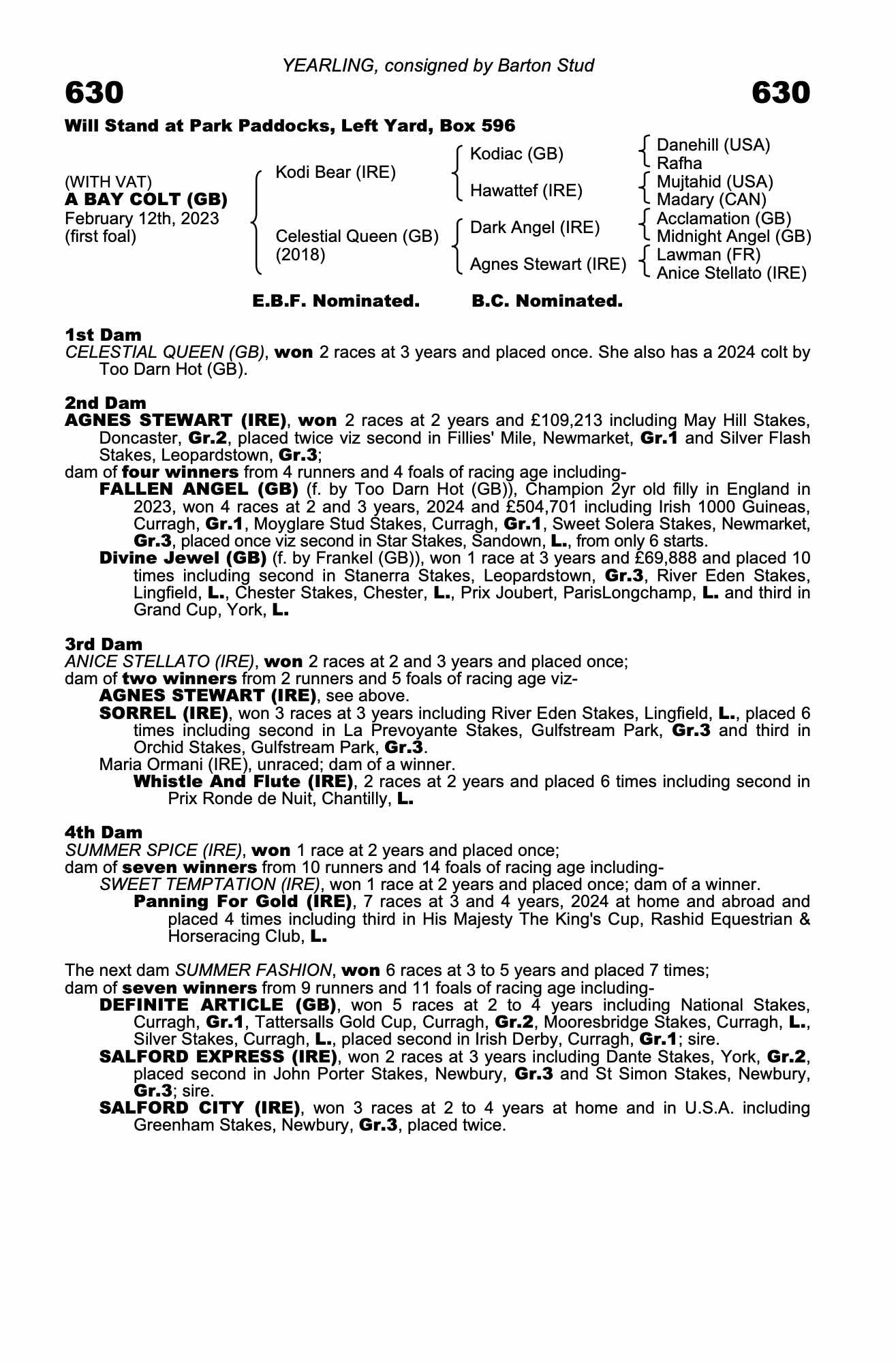Lot 630 Kodi Bear (IRE) /Celestial Queen (GB) B.C. (GB)