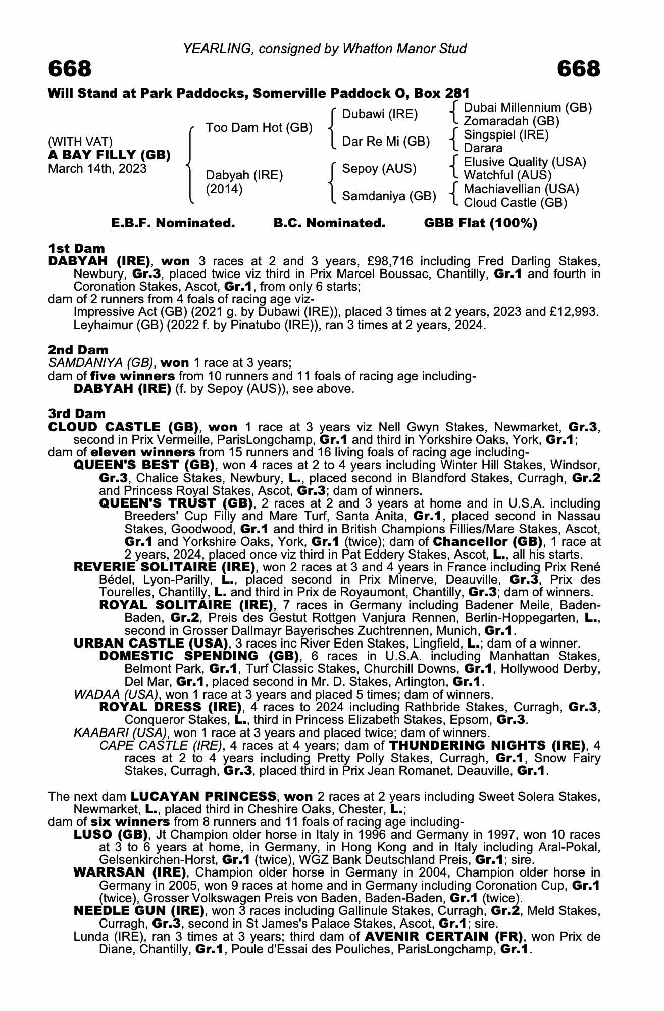 Consignor: Whatton Manor Stud