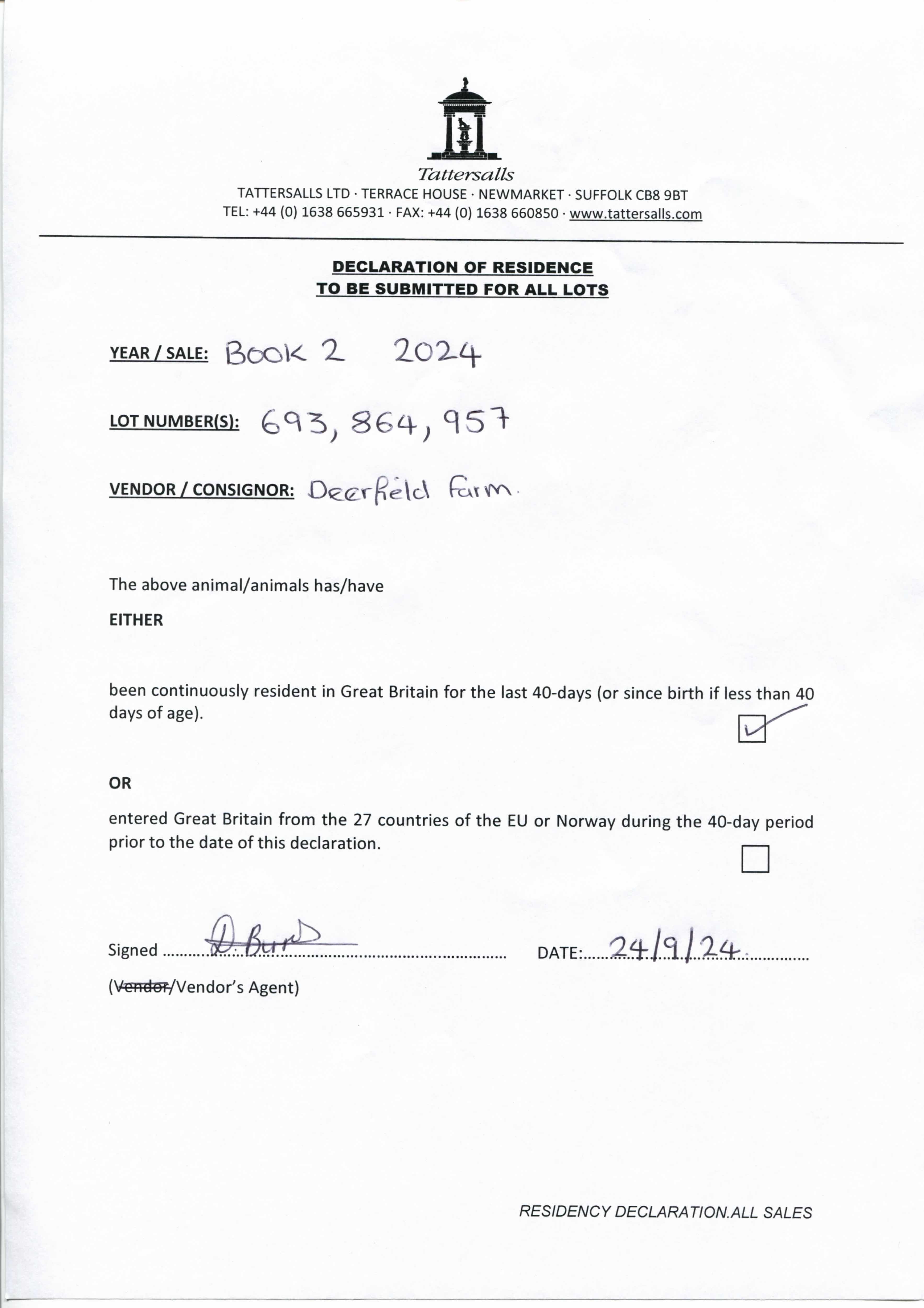 Consignor: Deerfield Farm