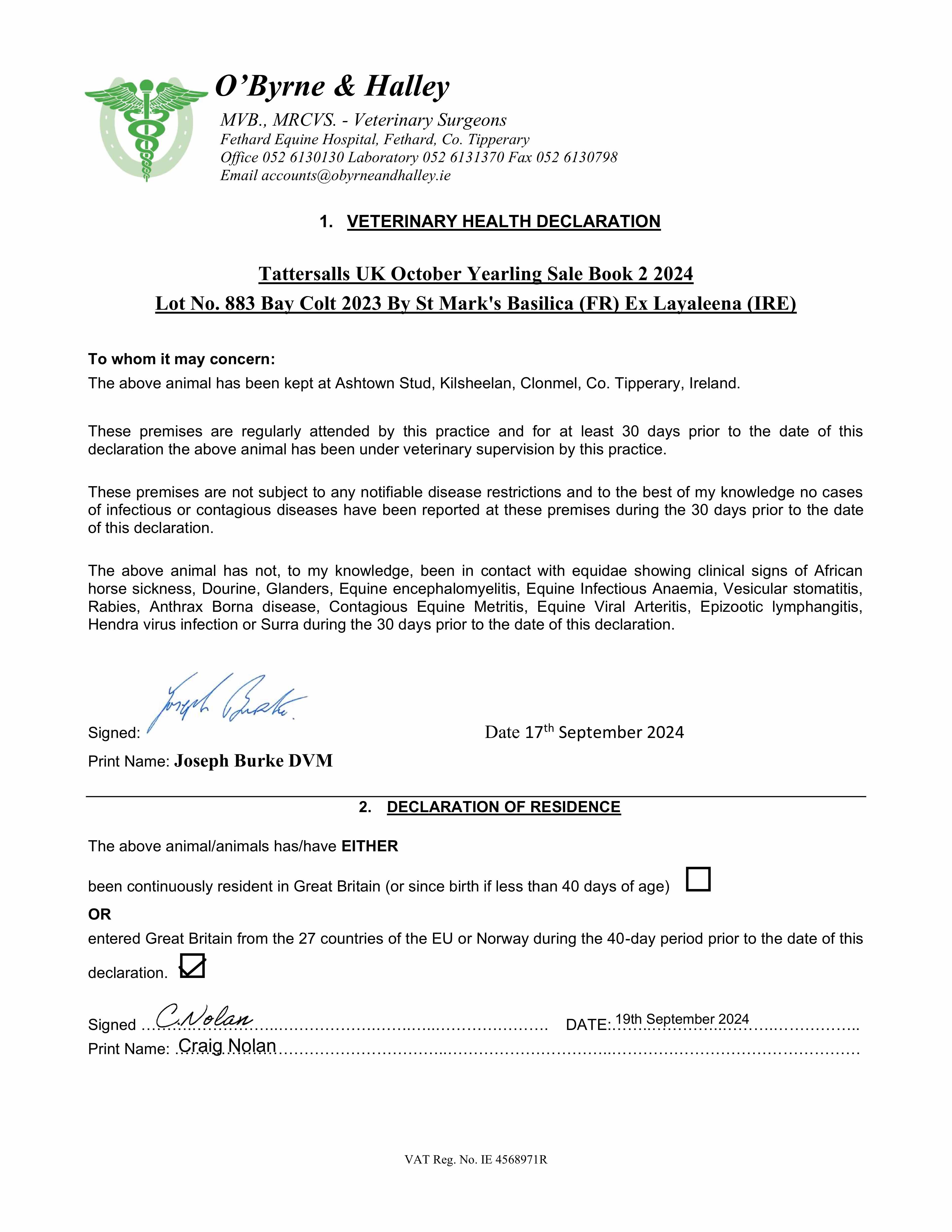 Consignor: Glenvale Stud, Ireland