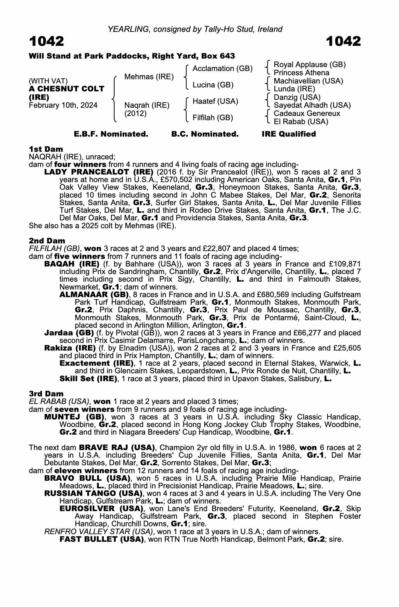 Consignor: Tally-Ho Stud, Ireland