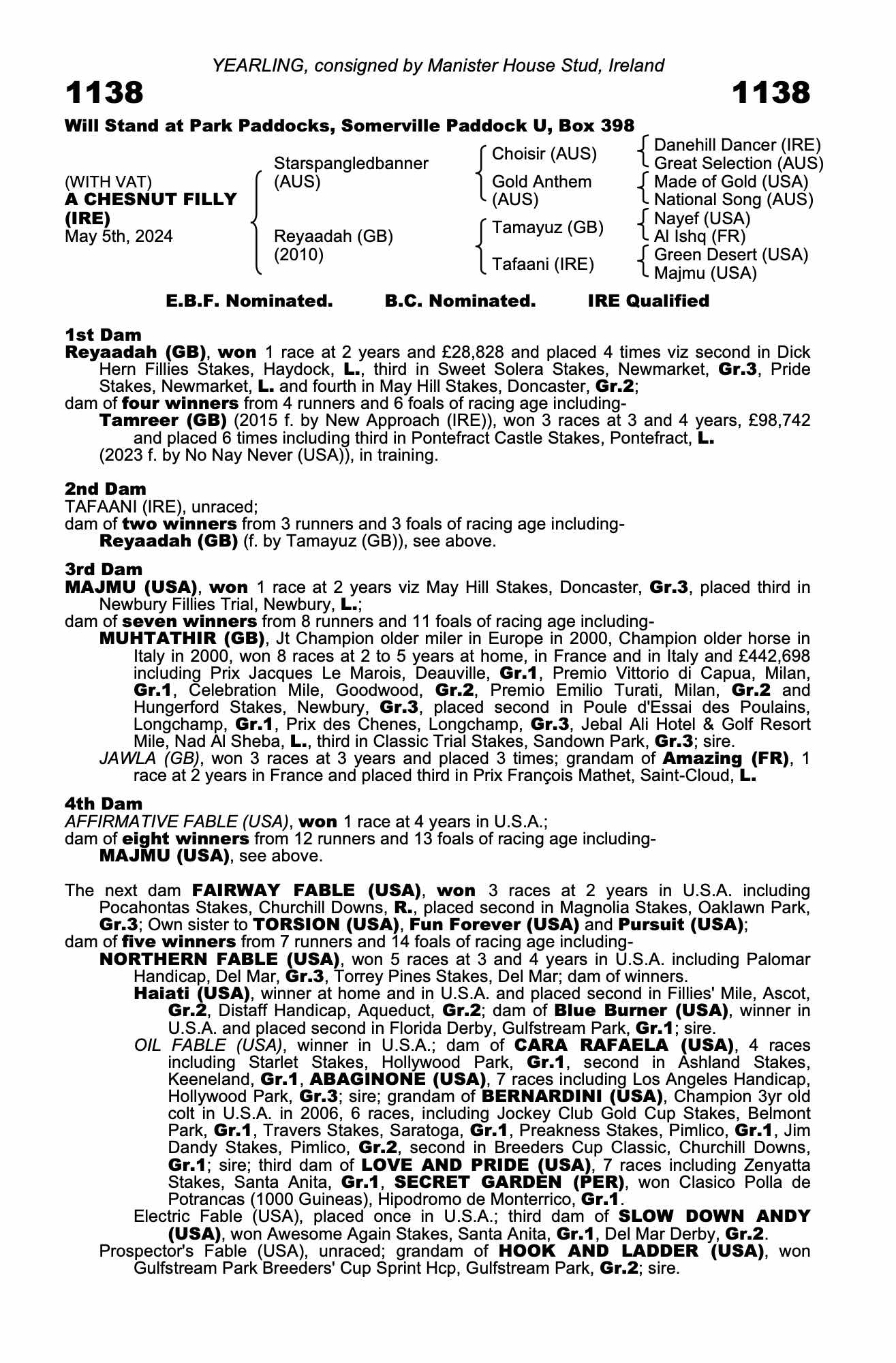 Consignor: Manister House Stud, Ireland