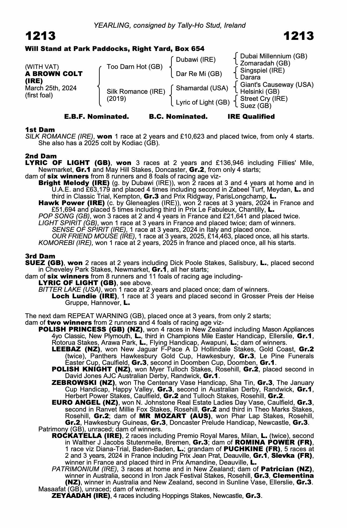 Lot 1213 Too Darn Hot (GB) /Silk Romance (IRE) Br.C. (IRE)