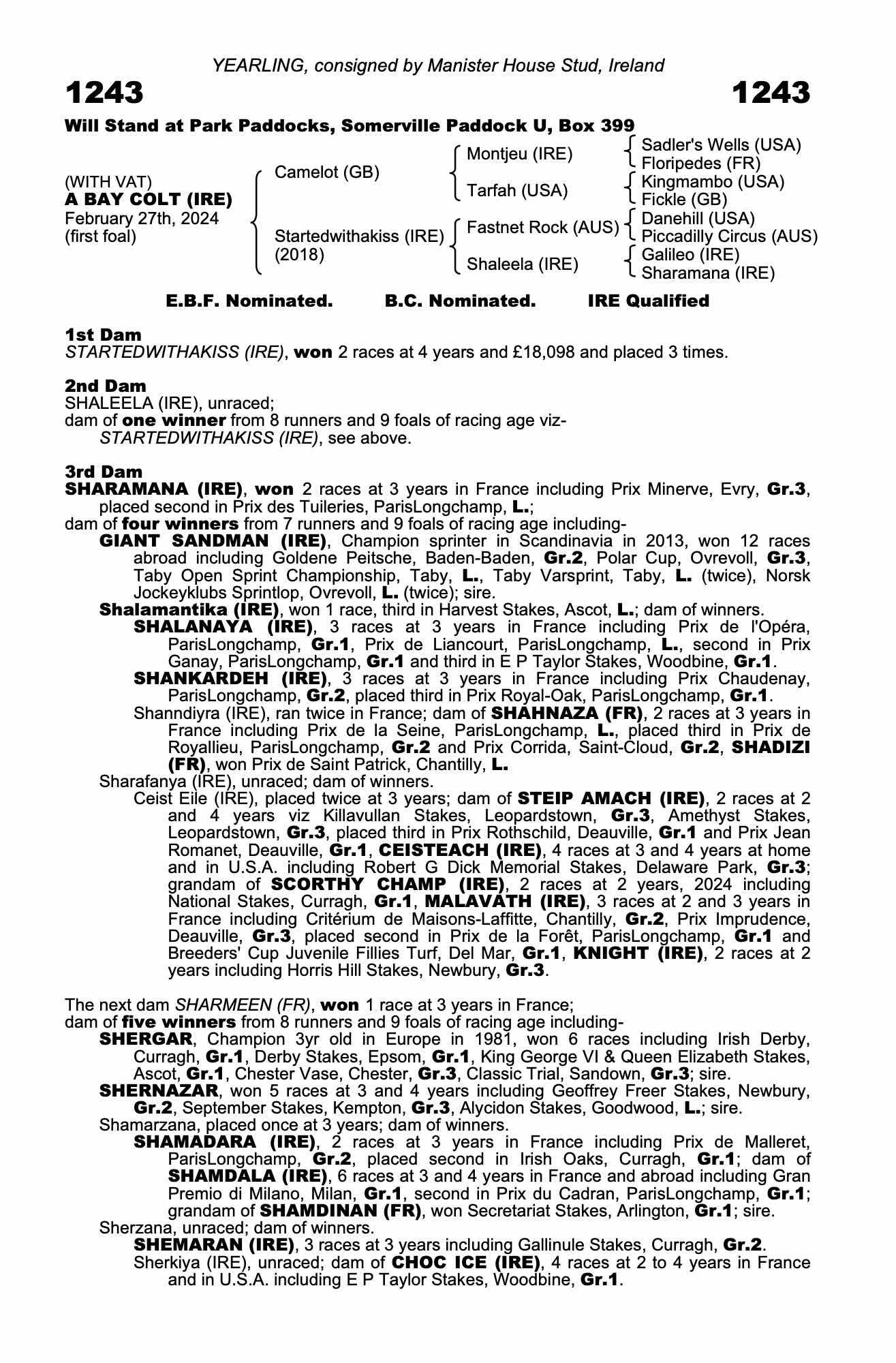 Under 3rd dam, Shalamantika (IRE), dam of SHALANAYA (IRE): ; dam of THE PADRE (IRE), 3 races at 3 years, 2025 at home and in U.S.A. including Del Mar Derby, Del Mar, Gr.2 and La Jolla Handicap, Del Mar, L..
