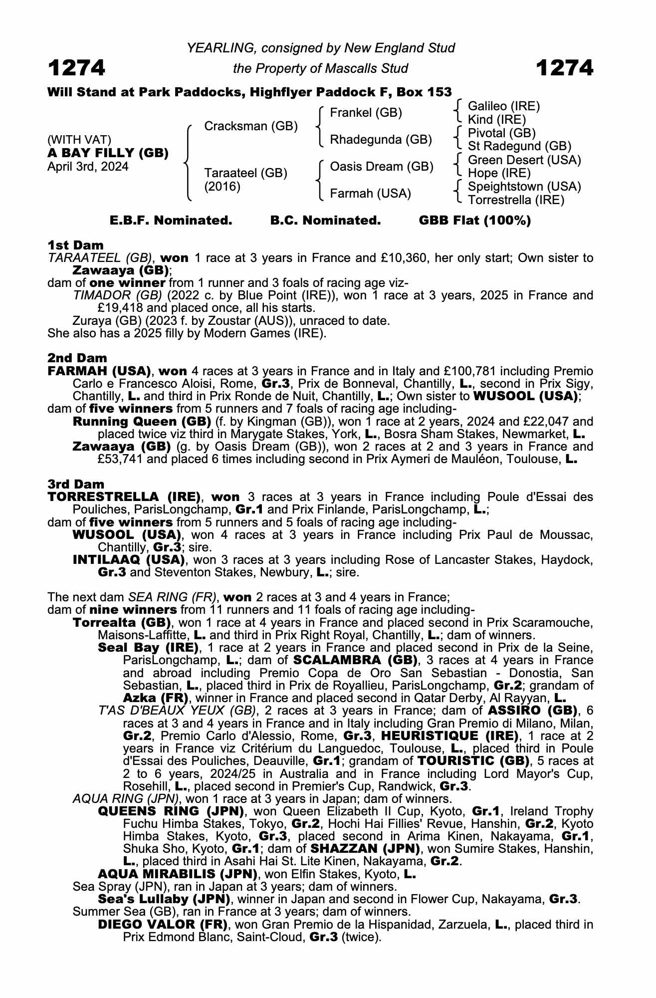 October Yearling Sale, Book 2 2024 lot 454 F. by Zoustar (AUS) 2023, New England Stud=>Stonestreet Stables 115,000 gns