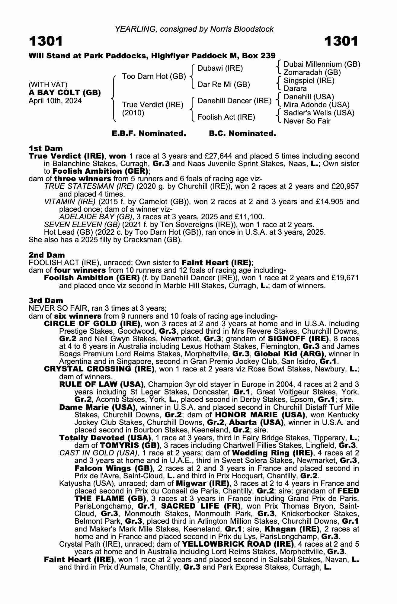 February Sale 2024 lot 295 True Statesman (IRE) (G. by Churchill (IRE)), Kingsley Park=>Shamrock Thoroughbreds 11,000 gns