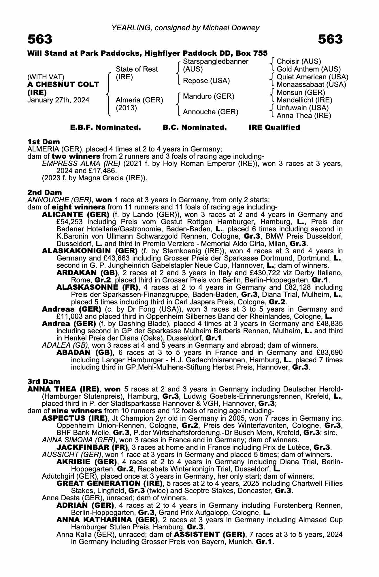 September Yearling Sale Part 1 2024 lot 430 F. by Magna Grecia (IRE) 2023, Mr. Michael Downey=>Lot Not Sold €4,500