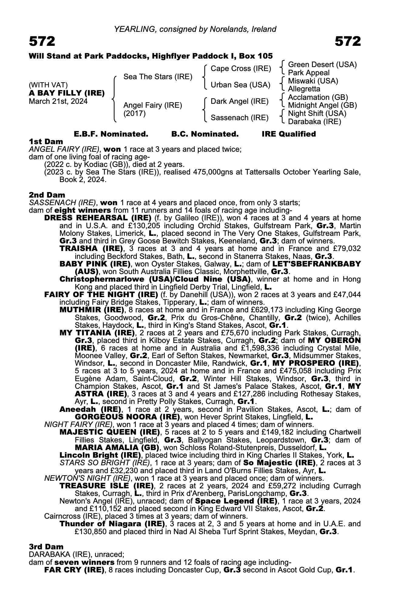 Under 2nd dam, NIGHT FAIRY (IRE), dam of MAJESTIC QUEEN (IRE): ; dam of MY HIGHNESS (IRE), 3 races at 2 years, 2025 in France and £86,017 including Prix du Calvados, Deauville, Gr.2.