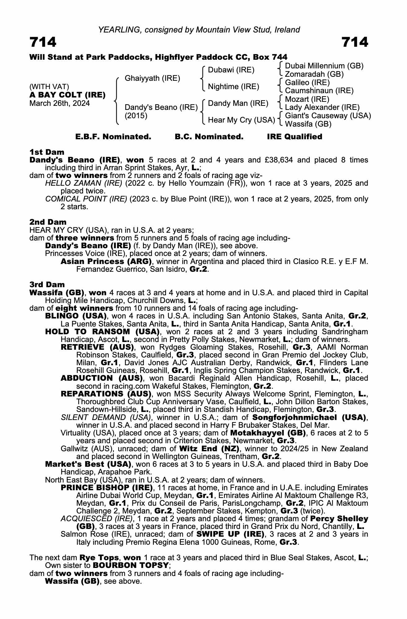 Consignor: Mountain View Stud, Ireland