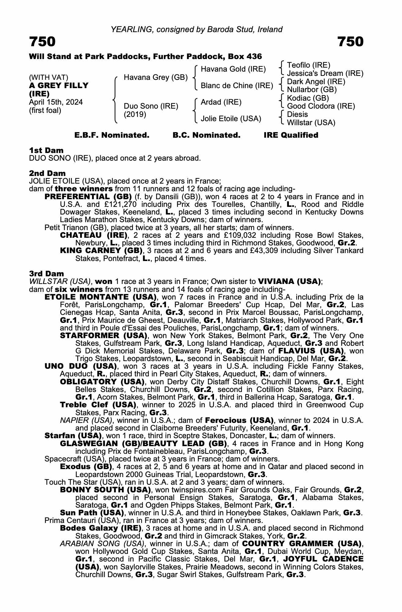 Lot 750 Havana Grey (GB) /Duo Sono (IRE) Gr.F. (IRE)