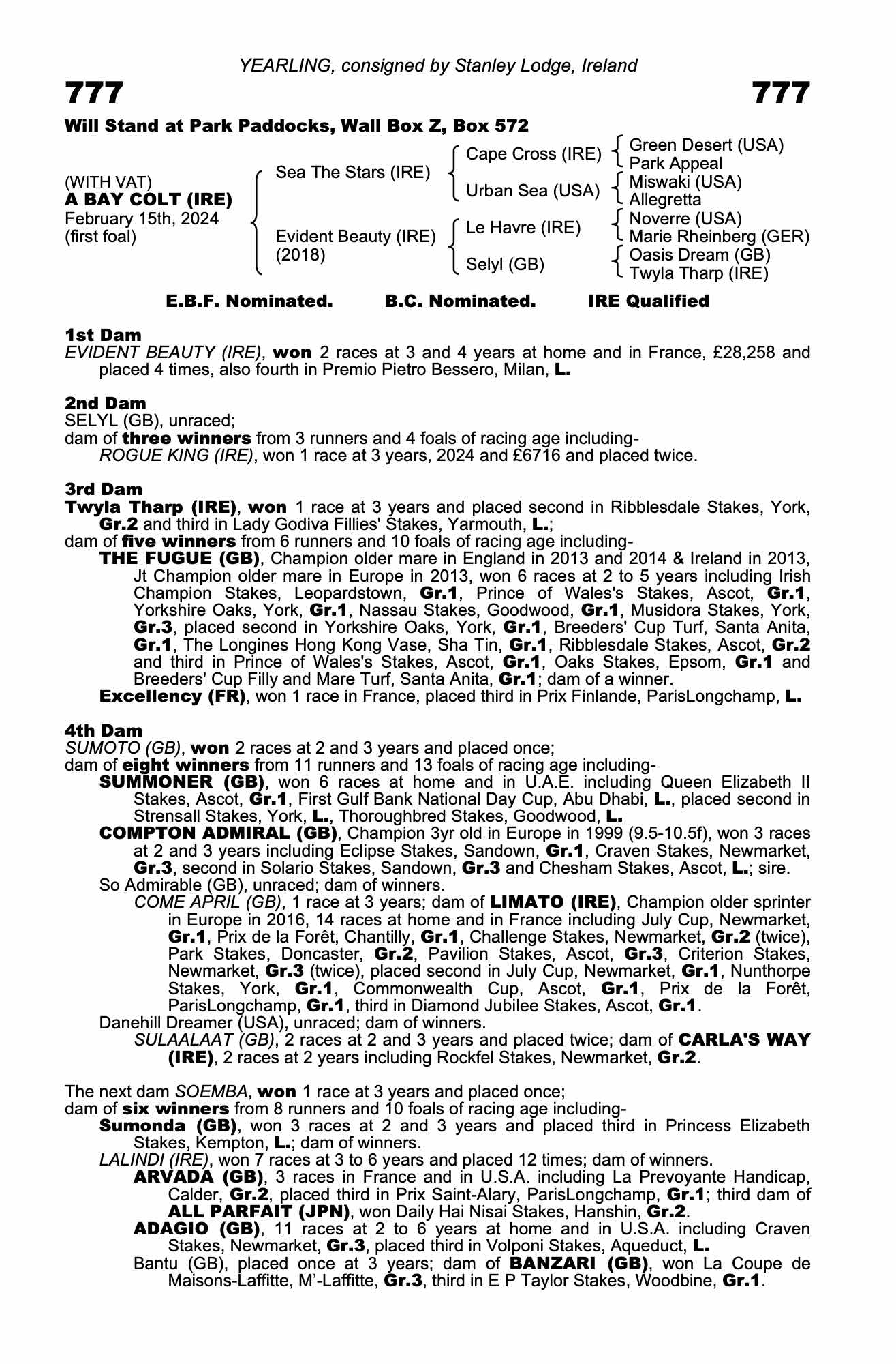 Consignor: Stanley Lodge, Ireland