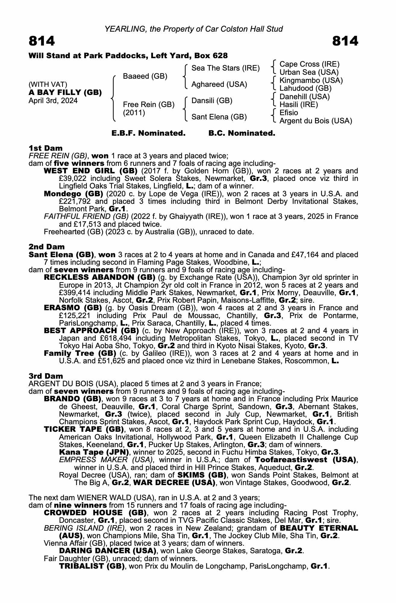 Consignor: Car Colston Hall Stud