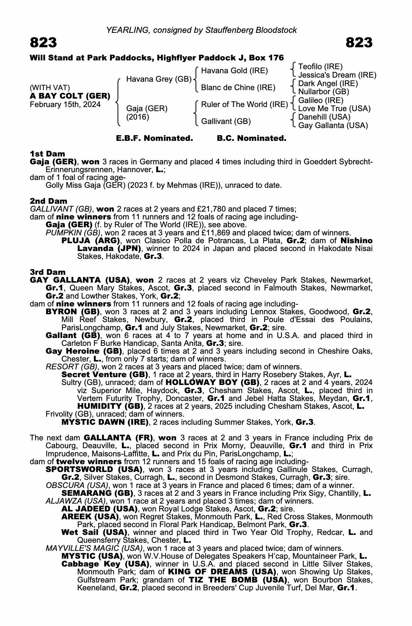 Contact: Philipp Stauffenberg  ✆ +491716507181  ✉ bloodstock@stauffenberg.com