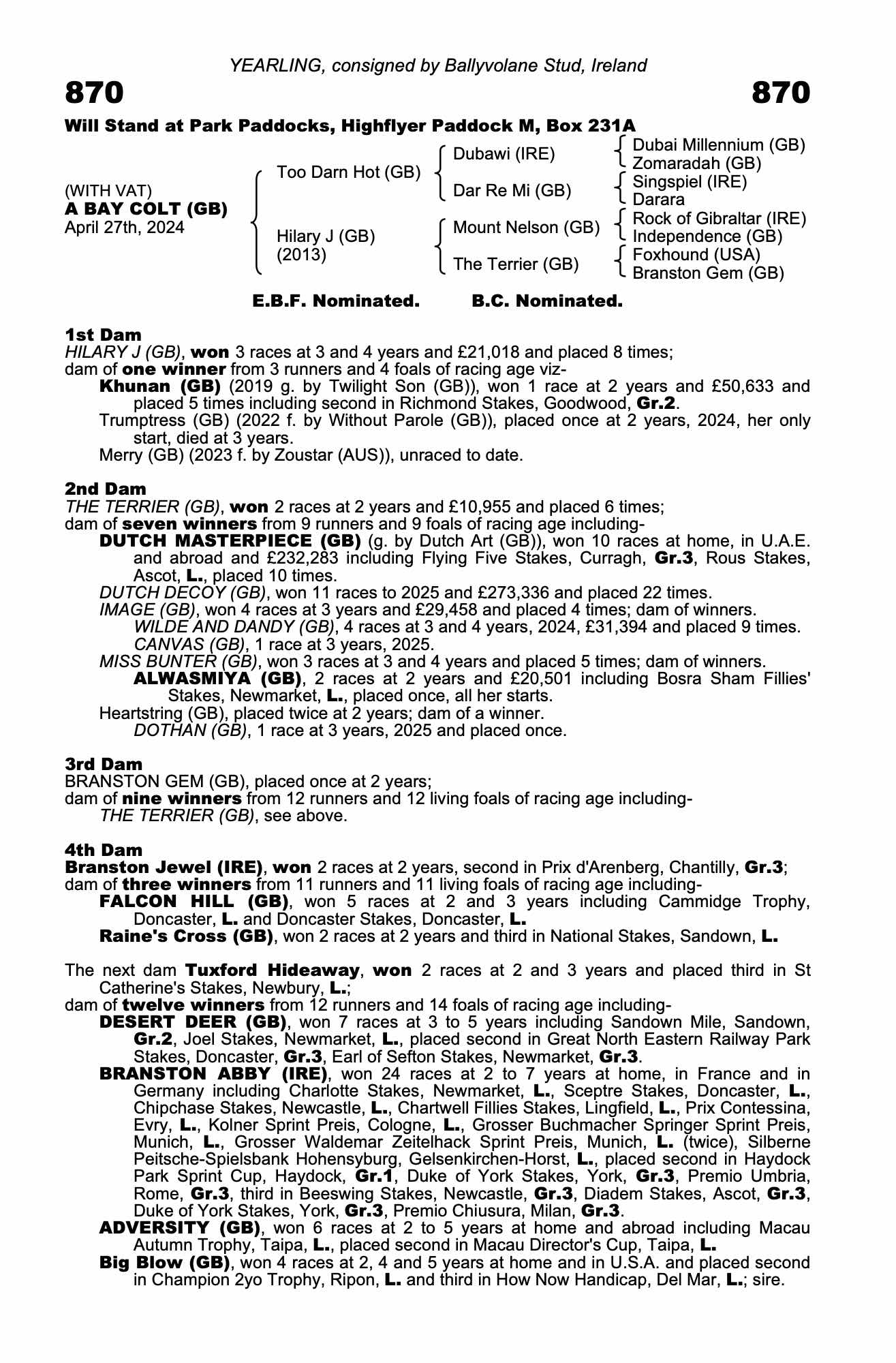 Online Sale - 21st November 2024 lot 4 Trumptress (GB) (F. by Without Parole (GB)), Whitsbury Manor Racing Stables (M. Tregoning)=>John Davis 1,000 gns
