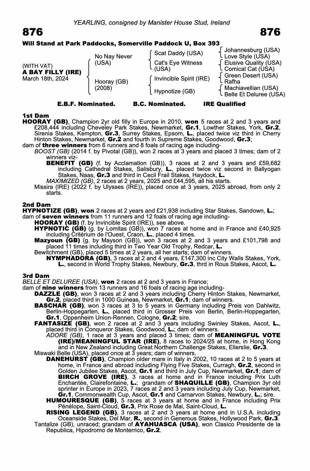 Consignor: Manister House Stud, Ireland