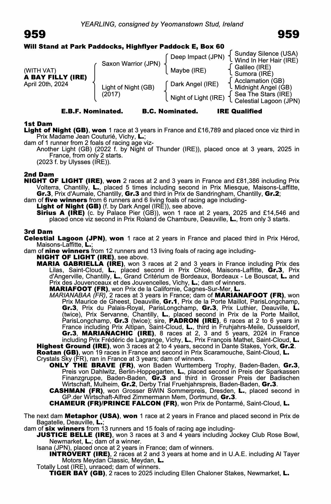 Lot 959 Saxon Warrior (JPN) /Light of Night (GB) B.F. (IRE)