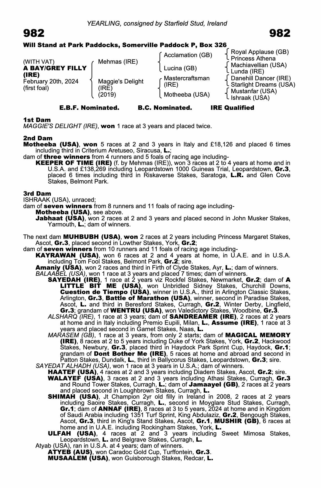 Consignor: Starfield Stud, Ireland