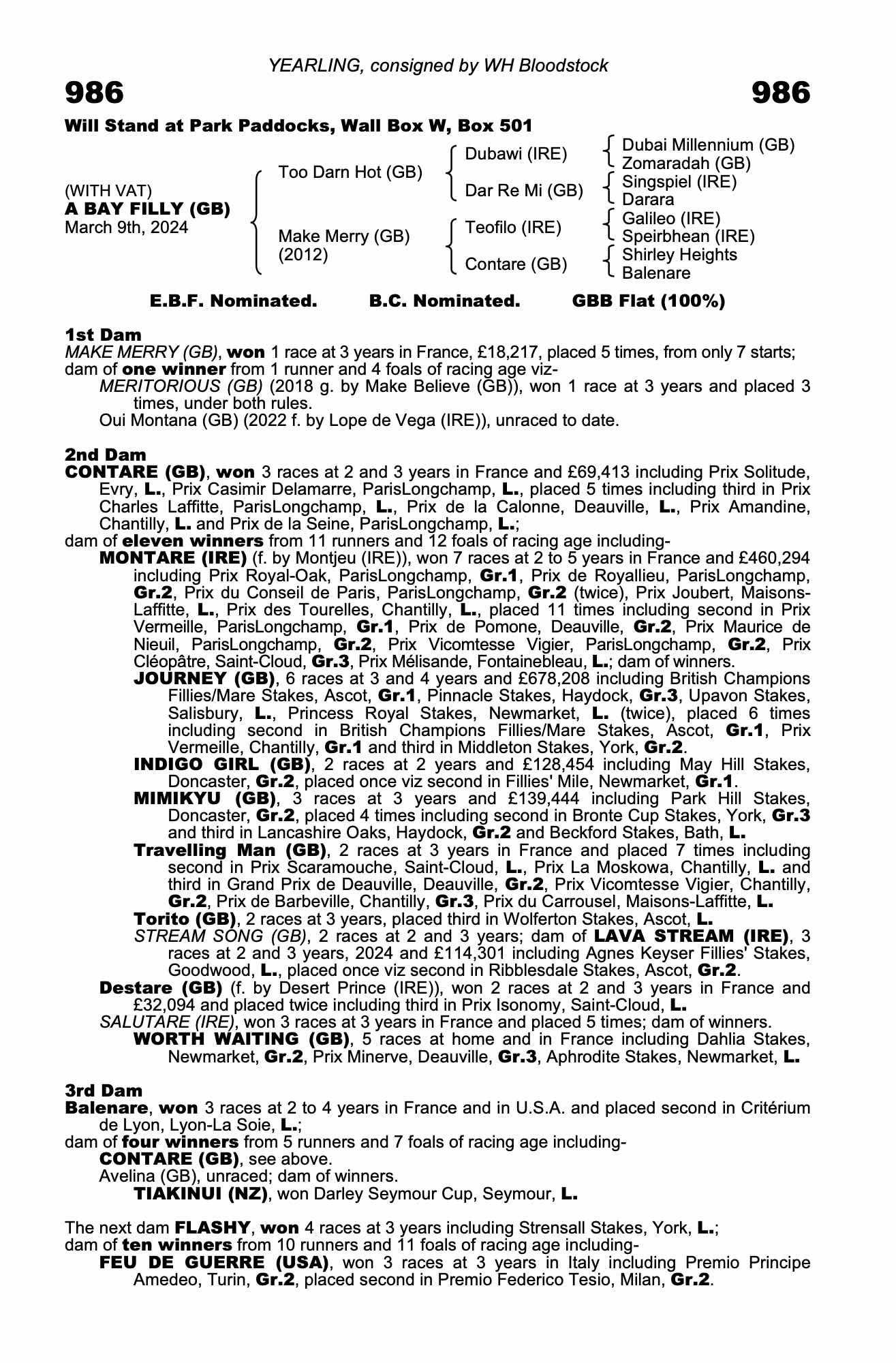 Online Sale - 21st November 2024 lot 101 Las Fallas (GB) (F. by Lope de Vega (IRE)), Hegarty Bloodstock=>Vendor 3,000 gns