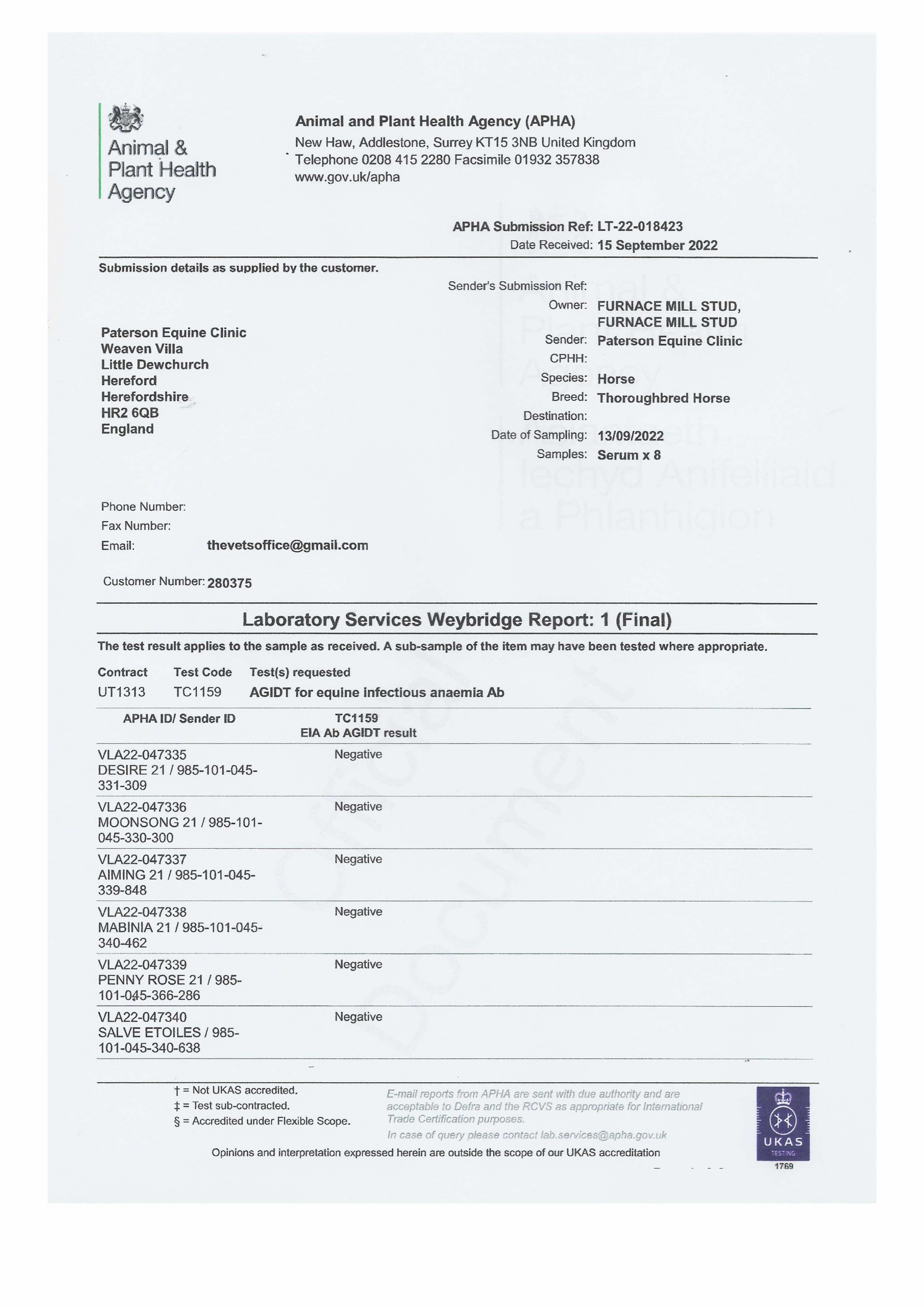 Consignor: Furnace Mill Stud (Agent)