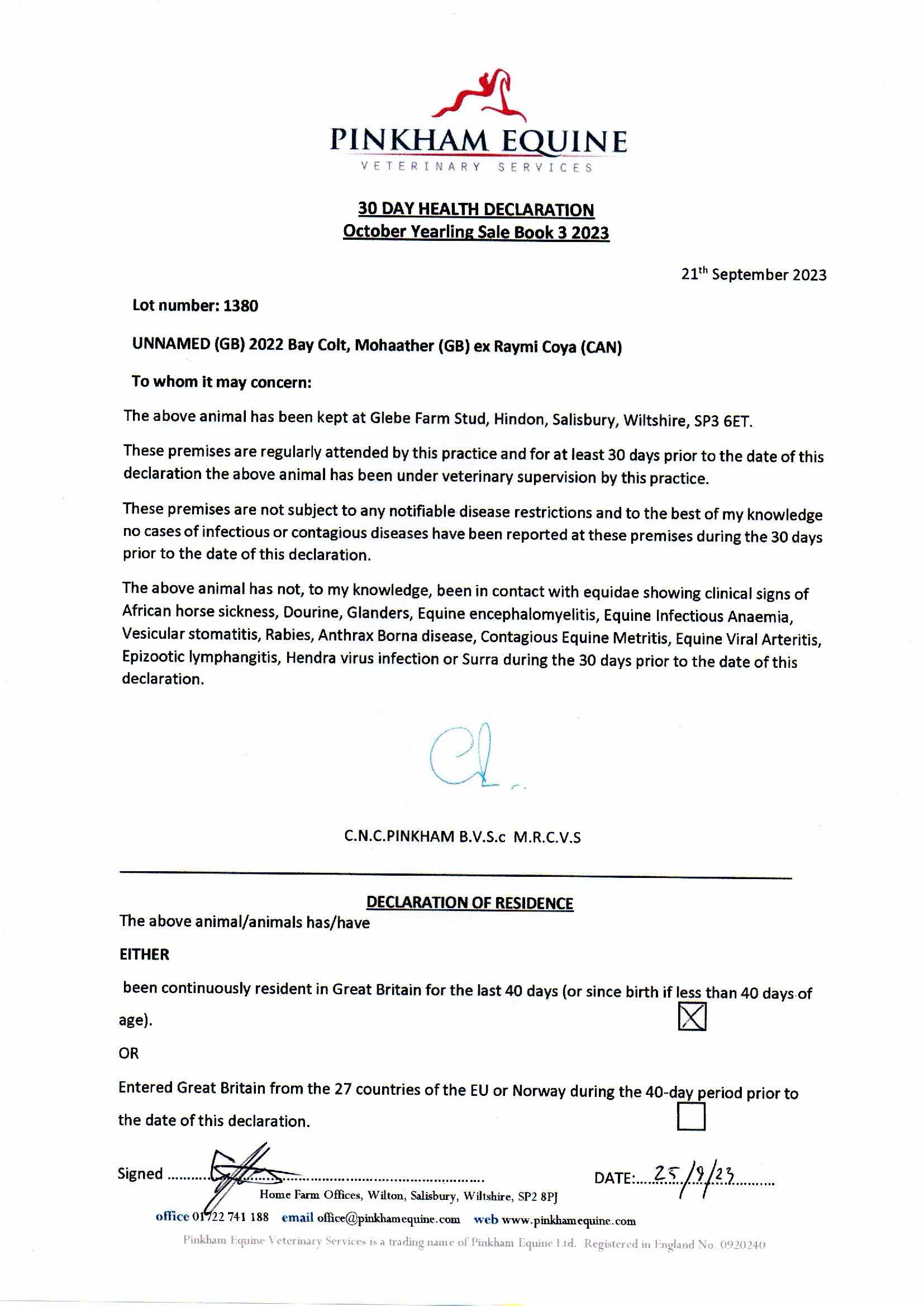 Online Sale - 21st November 2024 lot 156 With One Accord (GB) (M. by Acclamation (GB)), Irish National Stud, Ireland=>Alessandra Giudici 1,800 gns