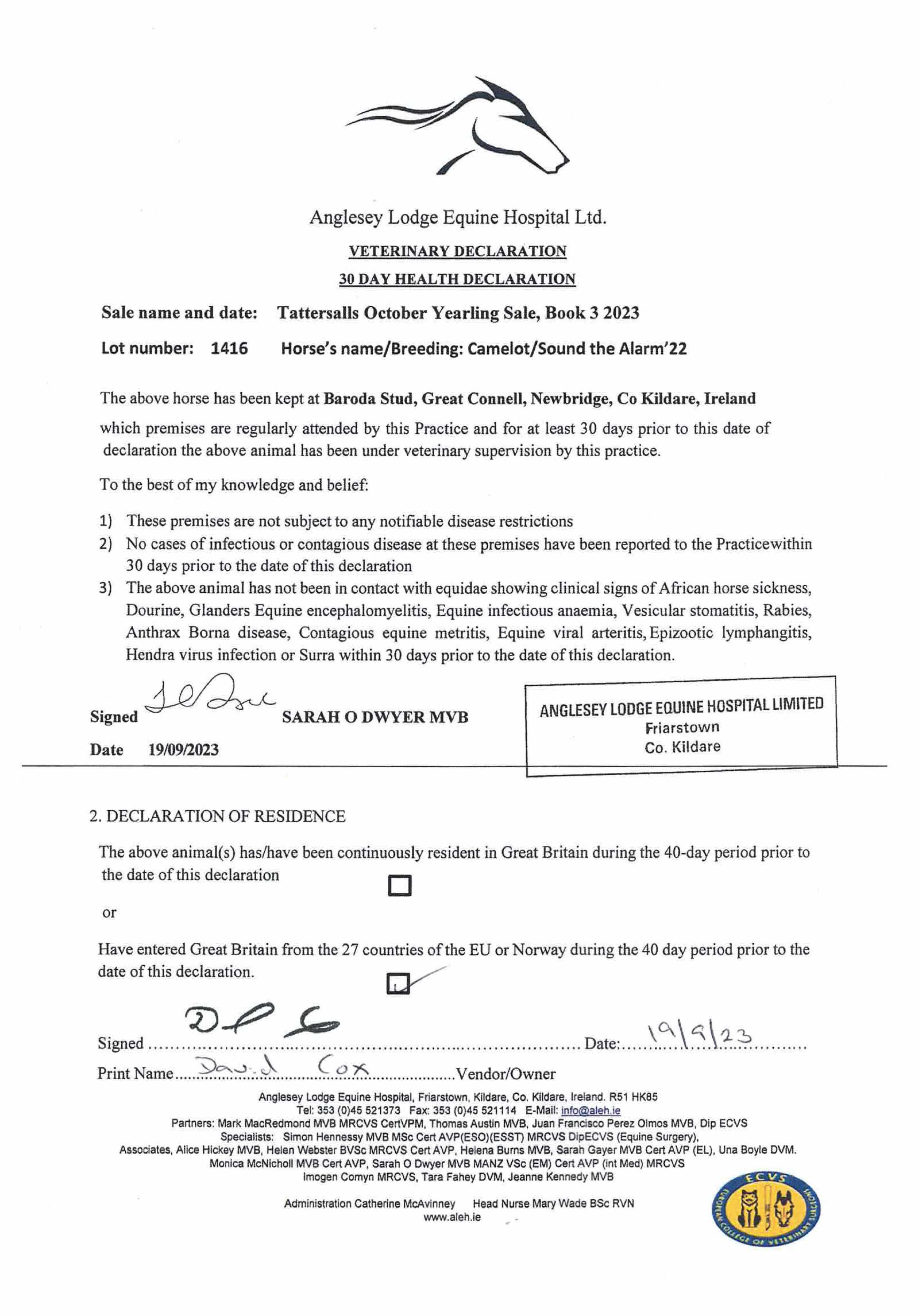 Online Sale - 10th August 2022 lot 10, Baroda Stud, Ireland=>Goldenfort Farm 17,000 gns