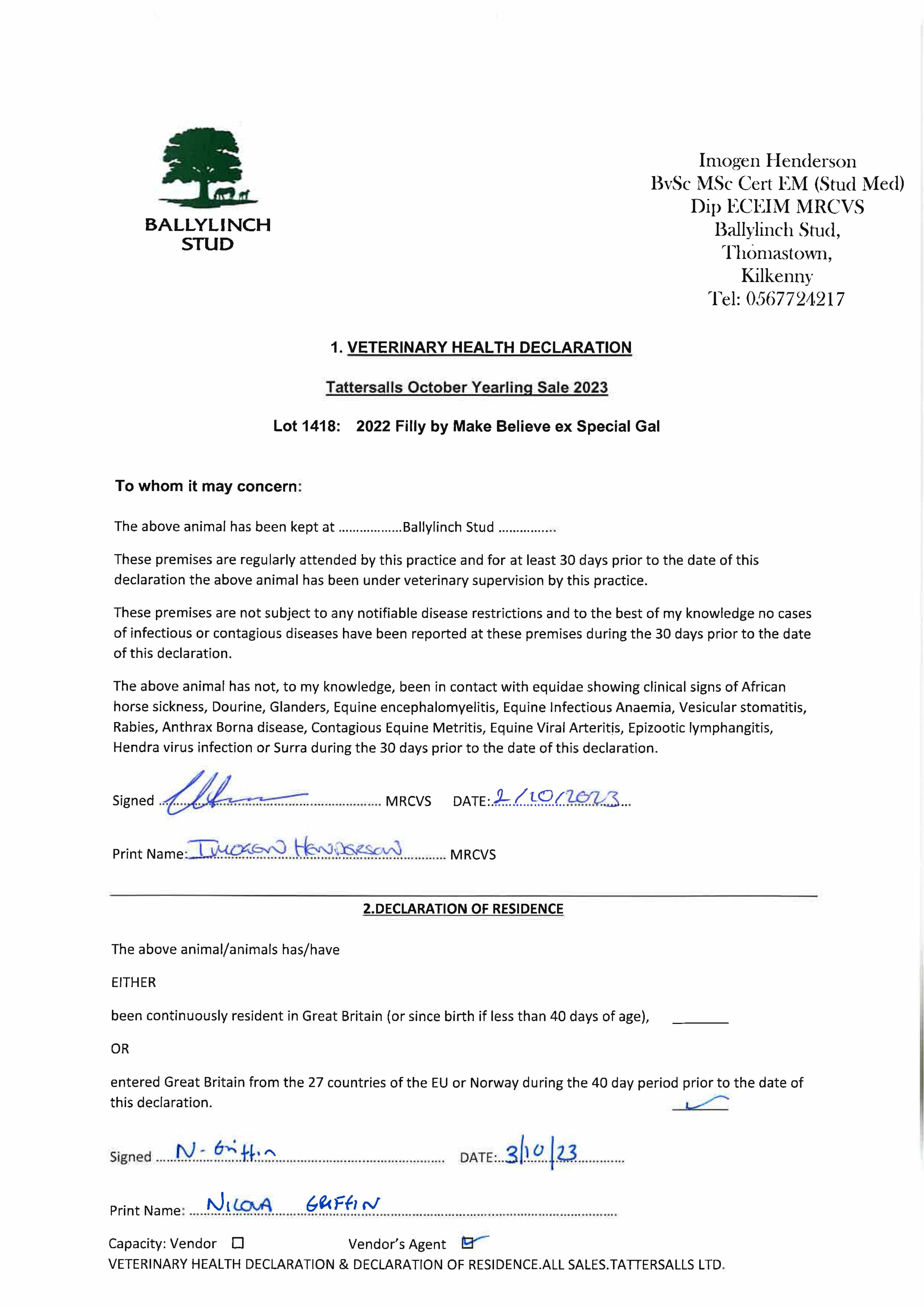Consignor: Ballylinch Stud, Ireland