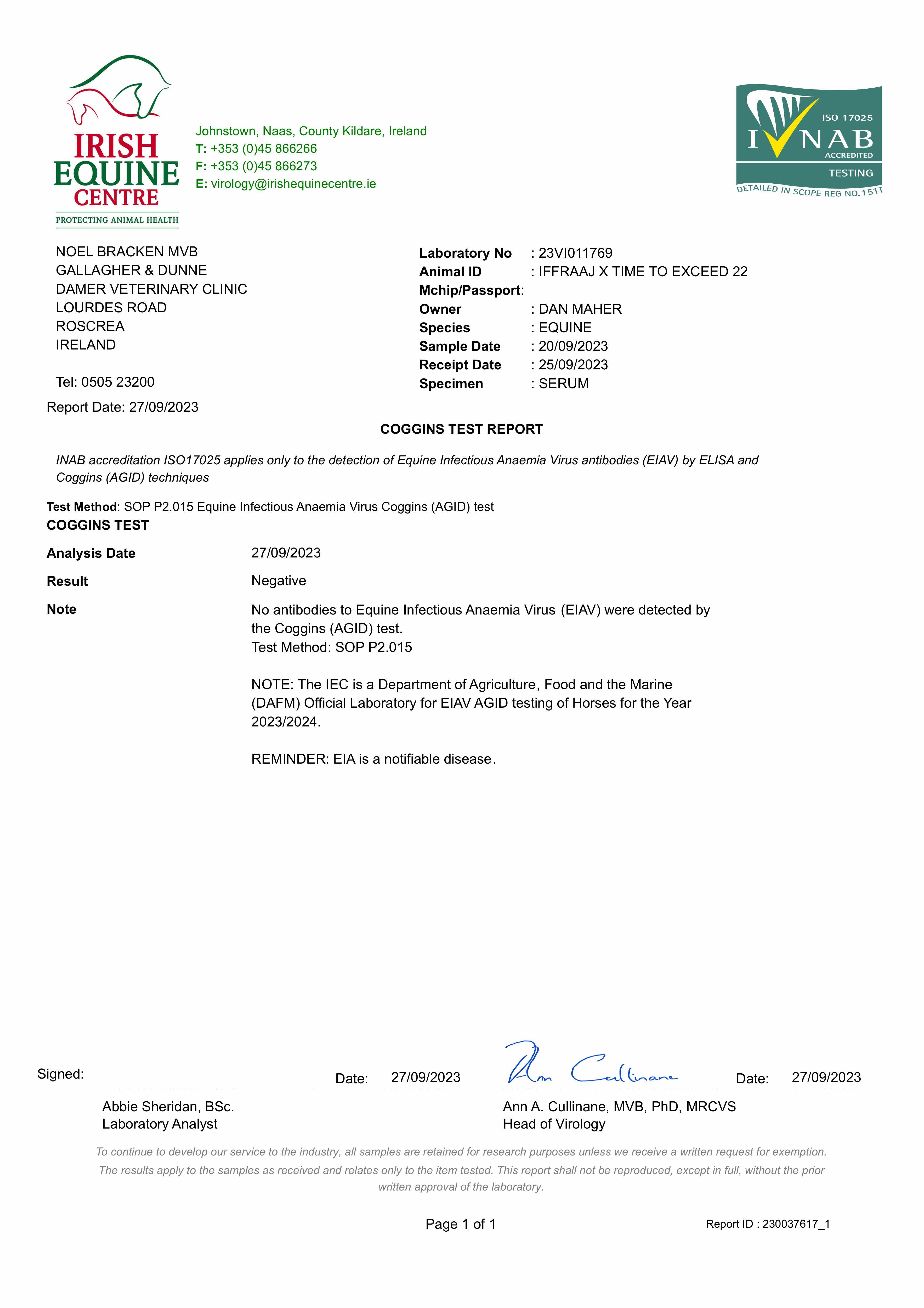 Under 3rd dam, TIME AWAY (IRE), dam of TIME CONTROL (GB): ; dam of SWEET MEMORIES (IRE), 2 races at 3 years, 2023 including Chalice Stakes, Newmarket, L., from only 3 starts.