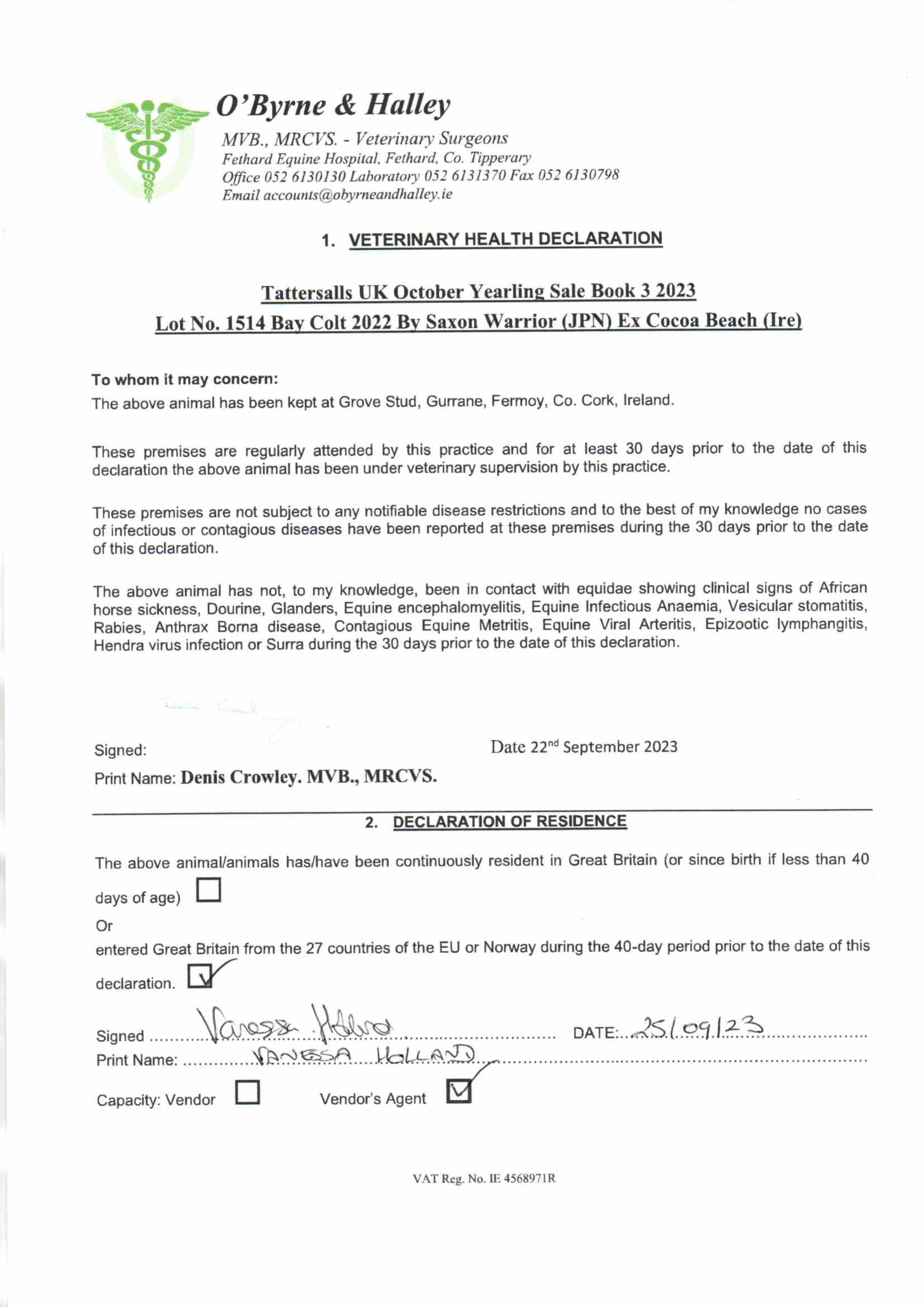 Consignor: Grove Stud, Ireland