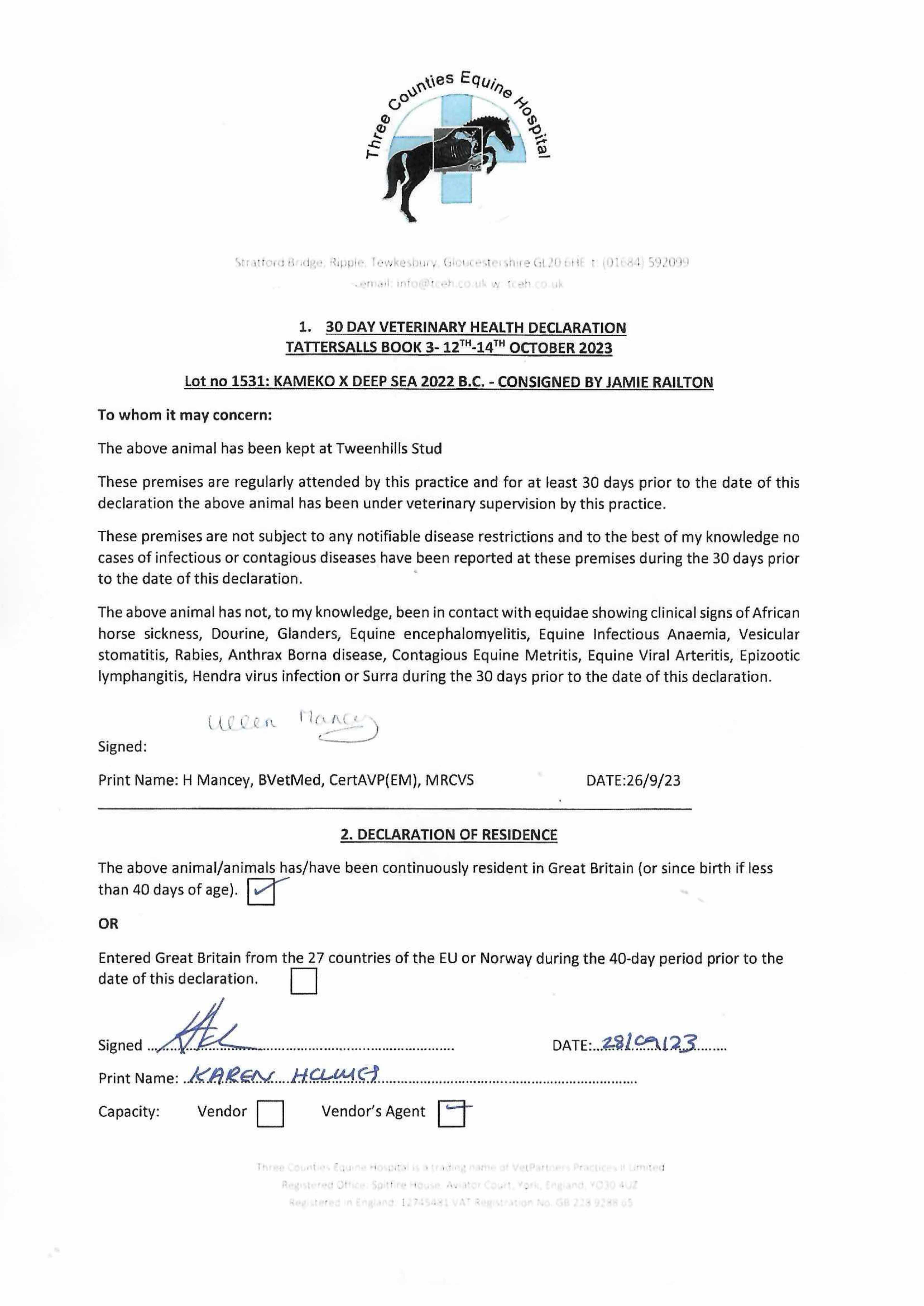 Consignor: Jamie Railton (Agent)