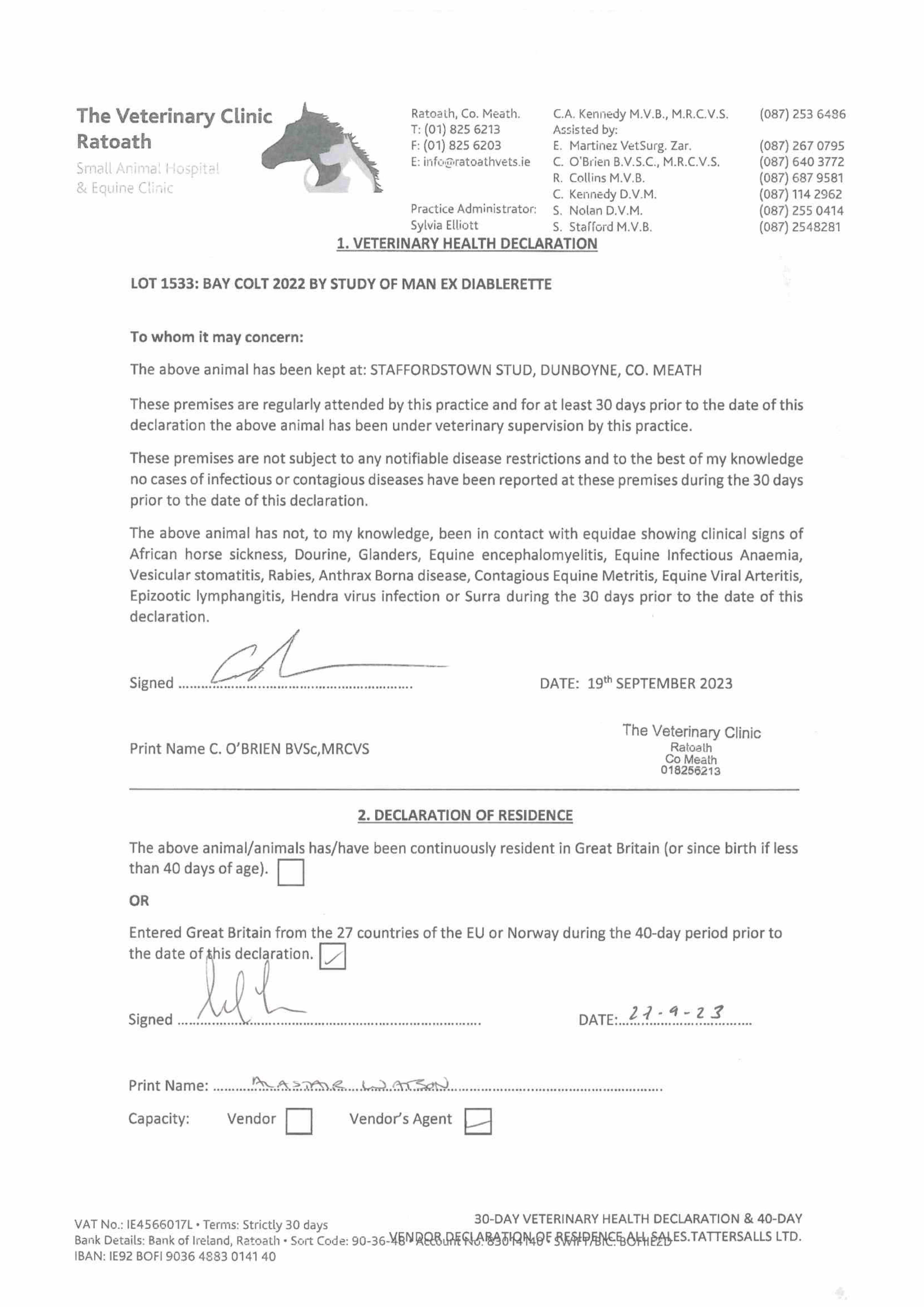 Consignor: Staffordstown, Ireland