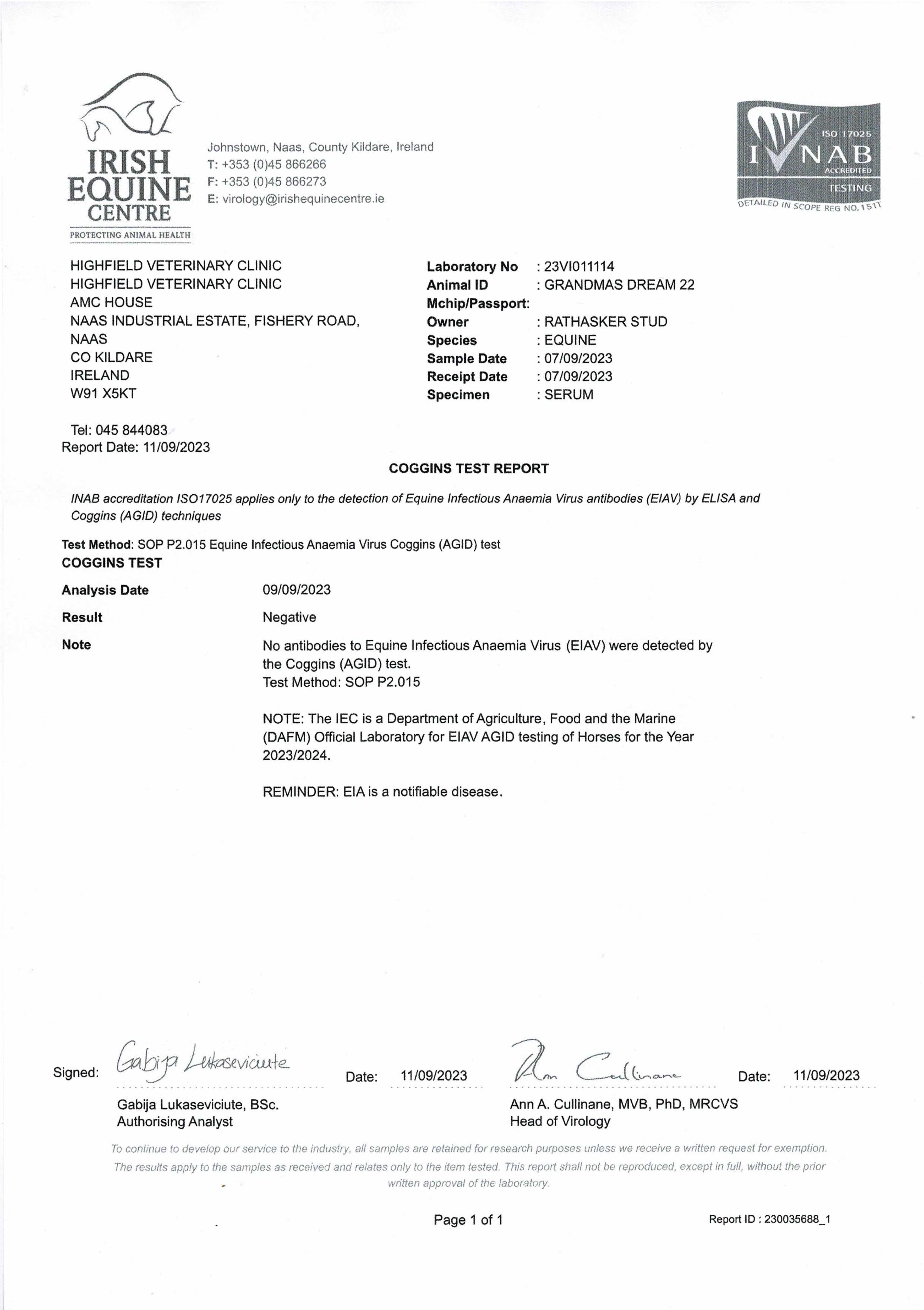 Consignor: Rathasker Stud, Ireland