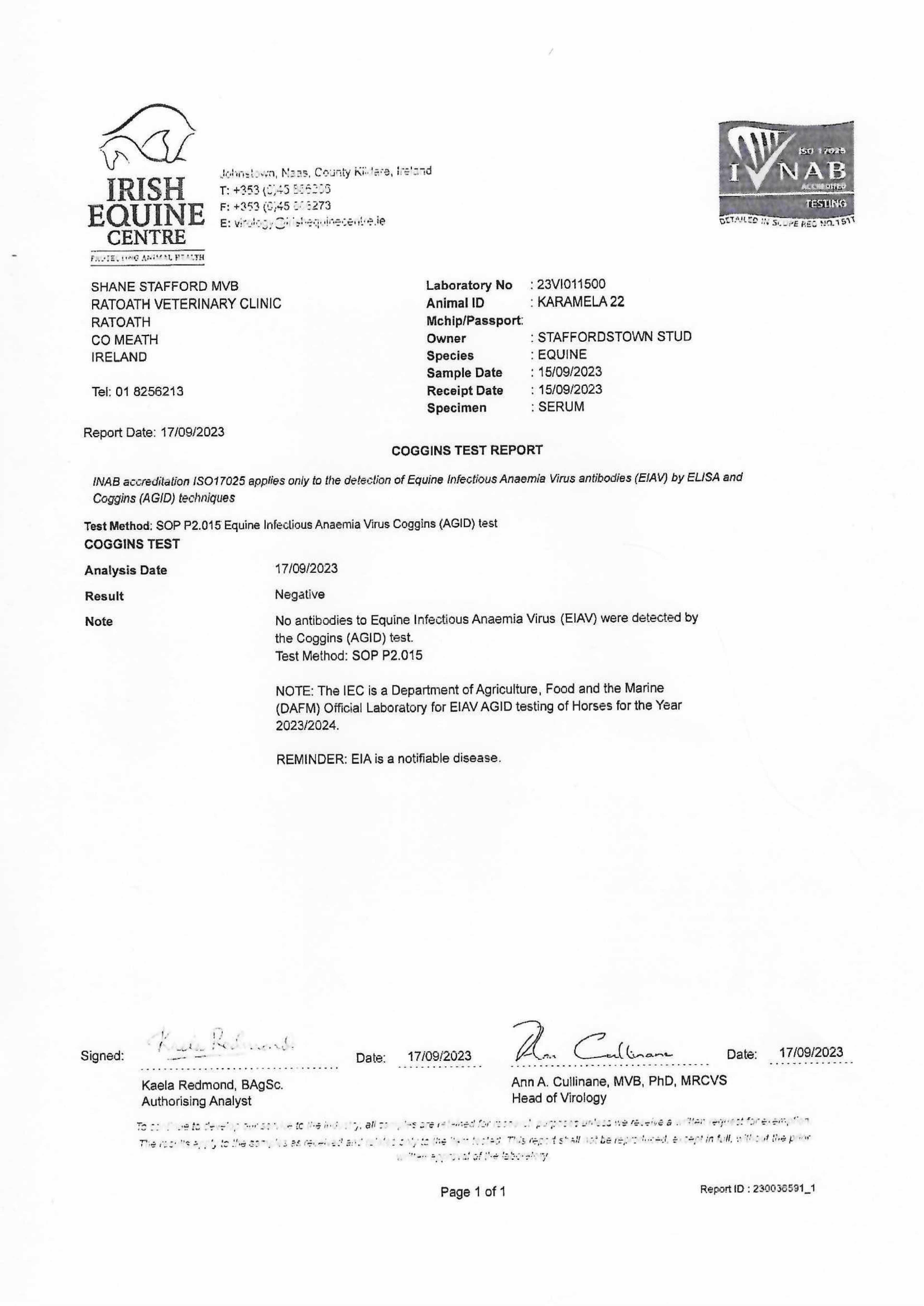 Consignor: Staffordstown, Ireland
