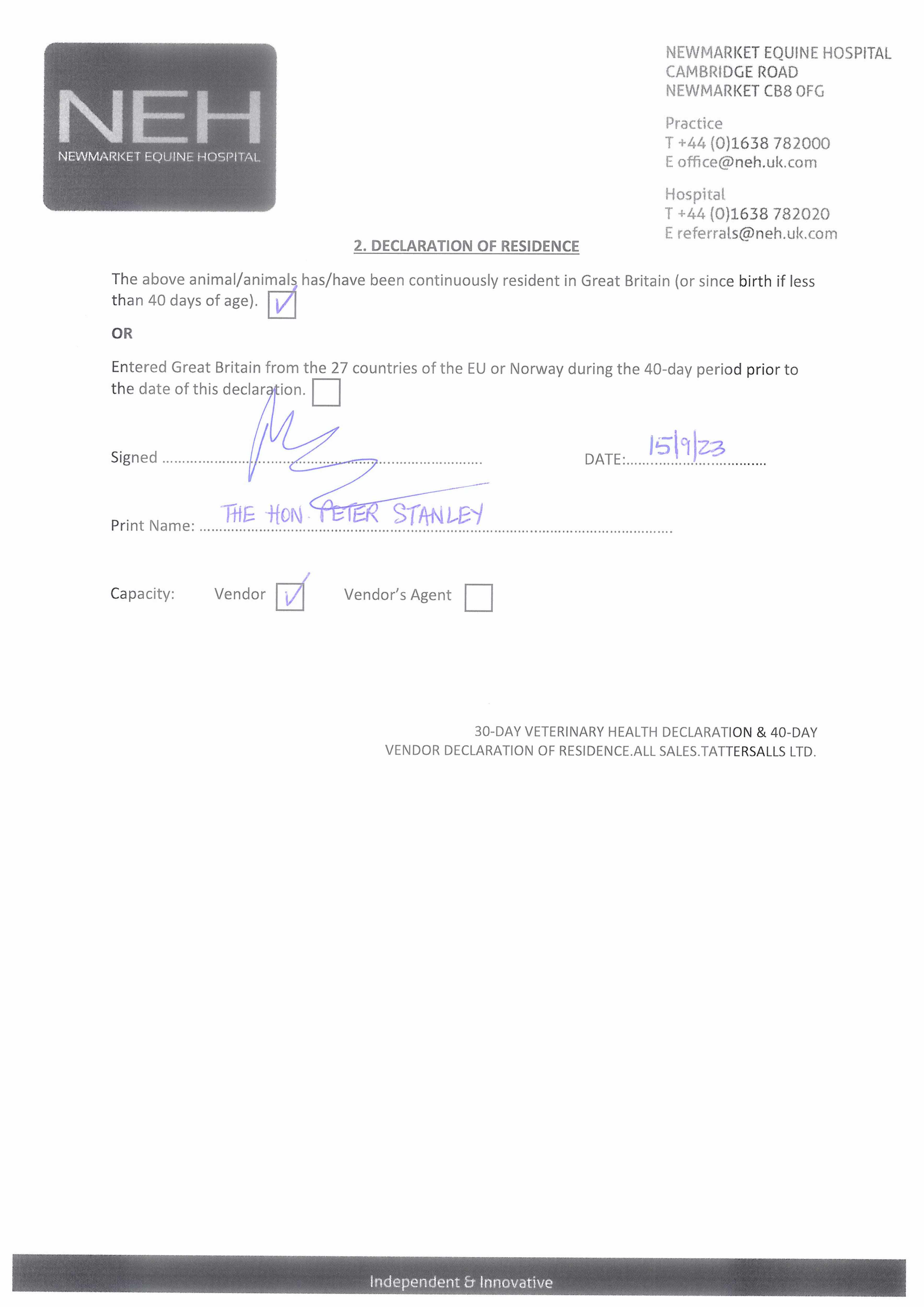Contact: Peter Stanley ✆ 07778 464146 ✉ stanley@newenglandstud.com