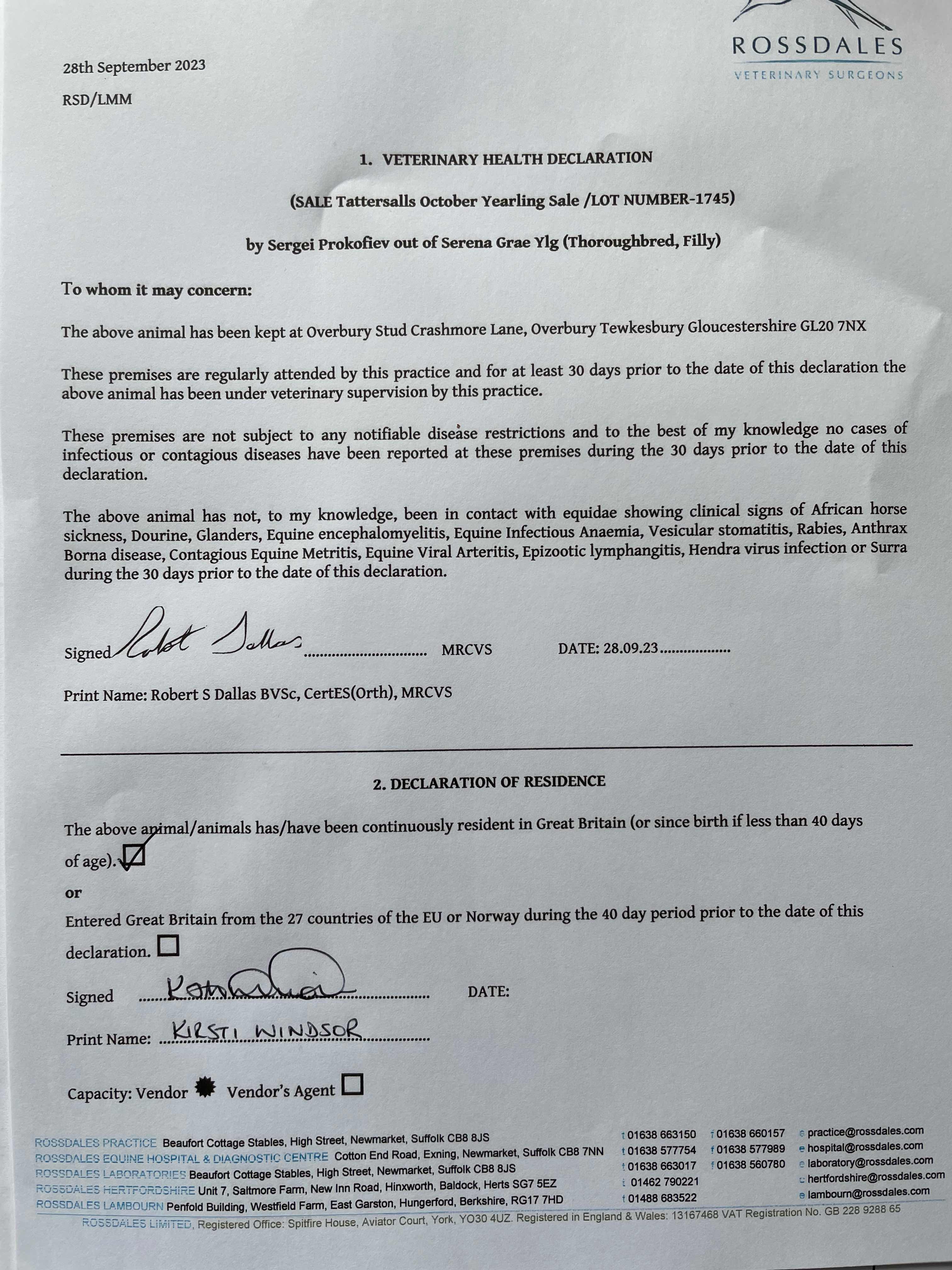 Consignor: Highclere Stud