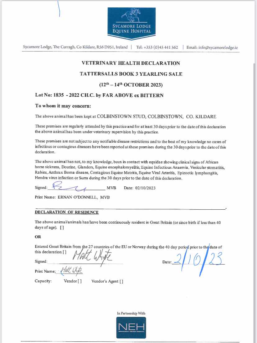 Online Sale - 18th January 2024 lot 51 F. by Raven's Pass (USA) 2021, Tinnakill House, Ireland=>Vendor 1,000 gns