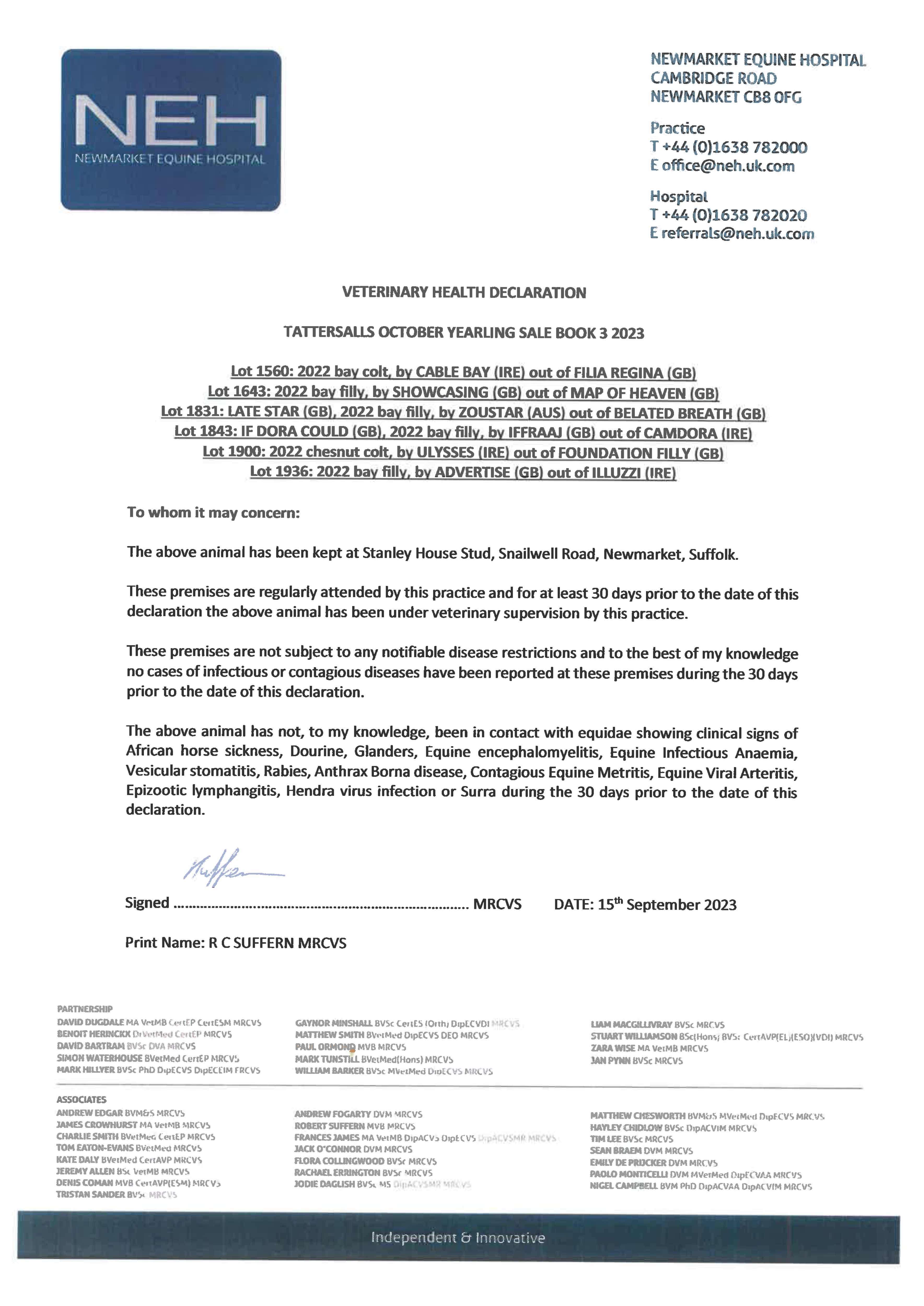 Somerville Yearling Sale 2024 lot 190 C. by Zoustar (AUS) 2023, New England Stud=>Habton Racing 1,000 gns