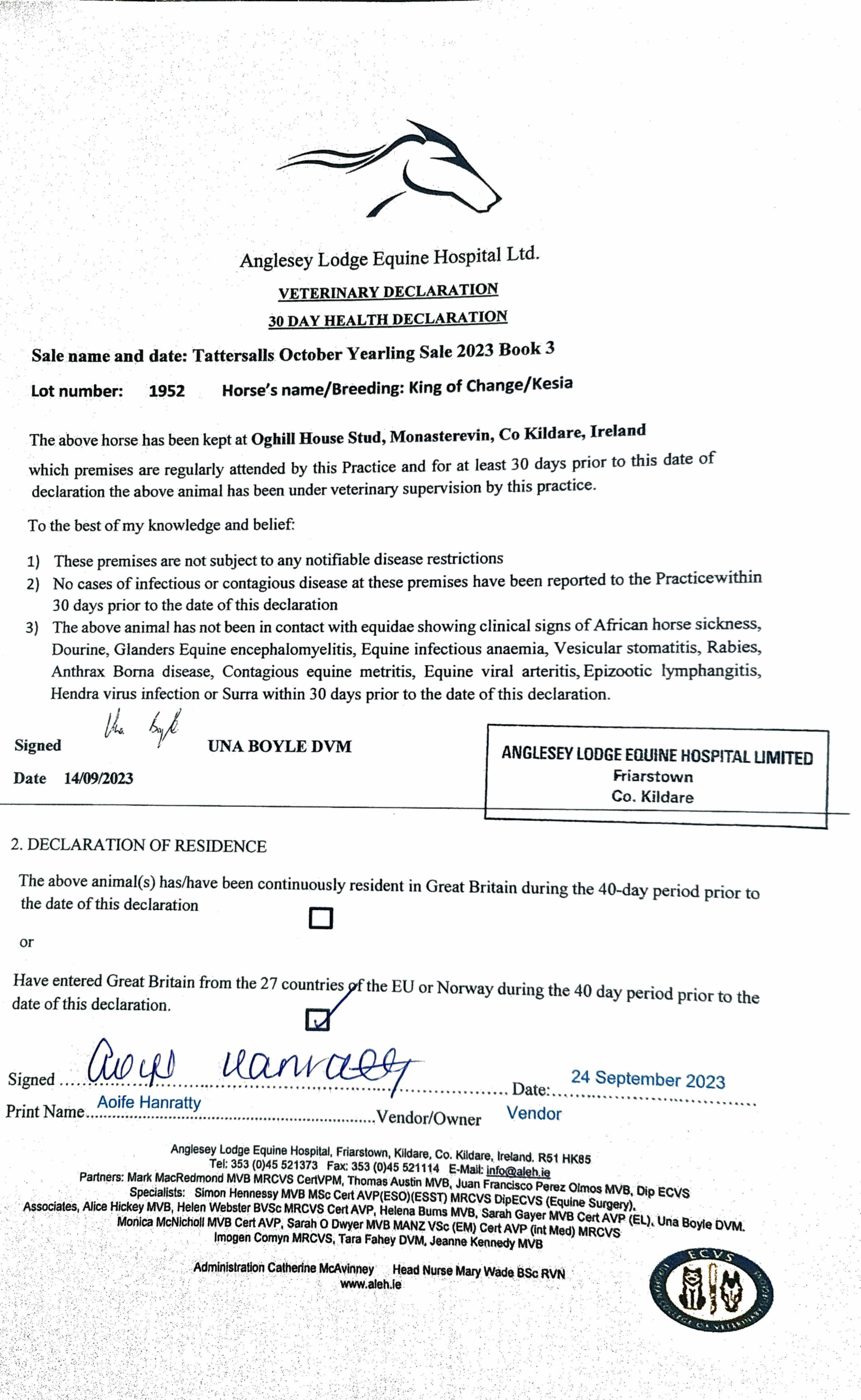 Lot 1952 King of Change (GB) /Kesia (IRE) B.F. (IRE)