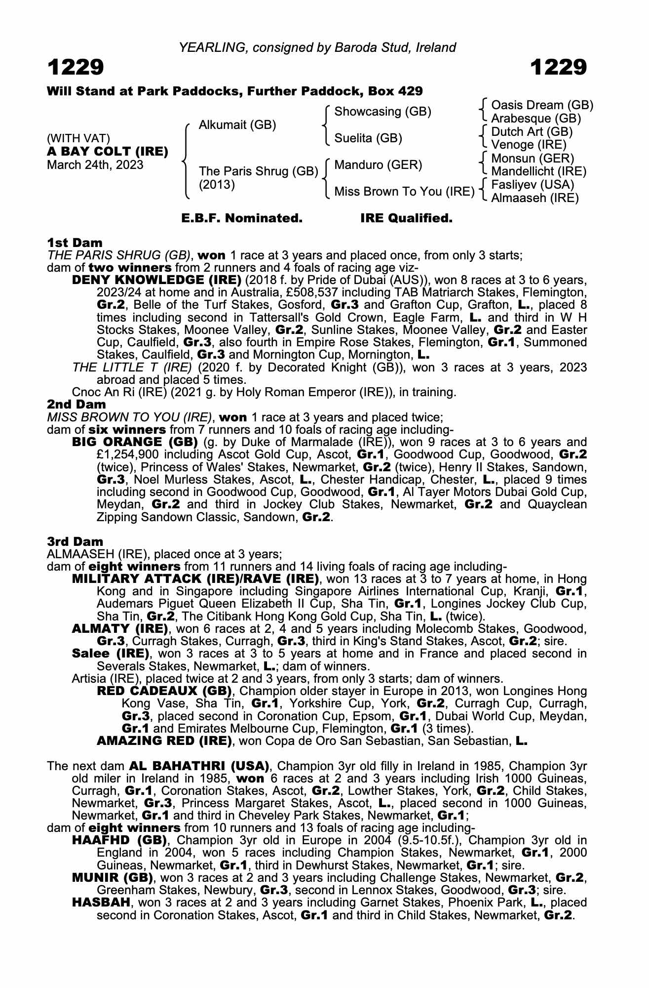 Lot 1229 Alkumait (GB) /The Paris Shrug (GB) B.C. (IRE)
