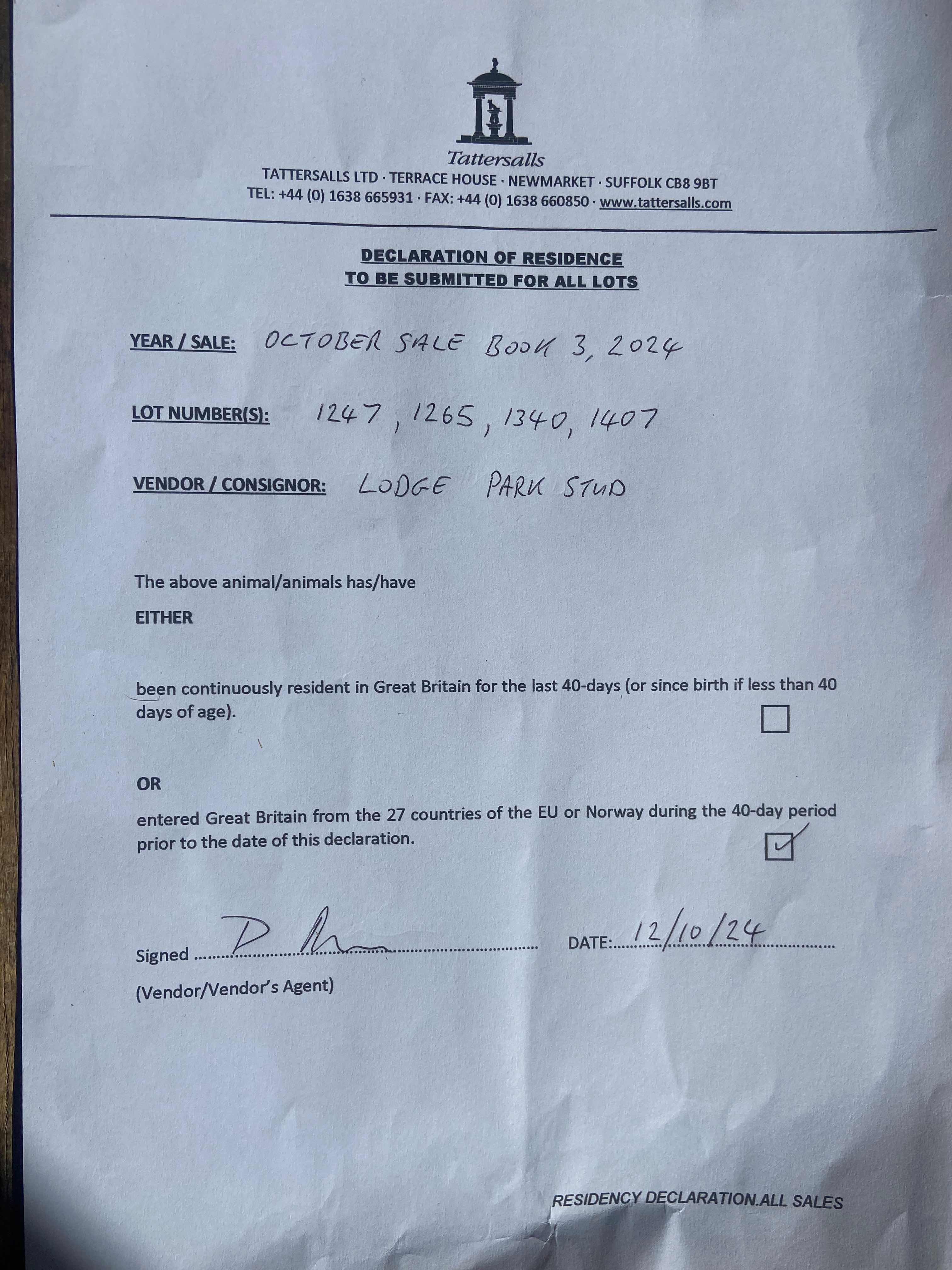 Consignor: Lodge Park Stud, Ireland